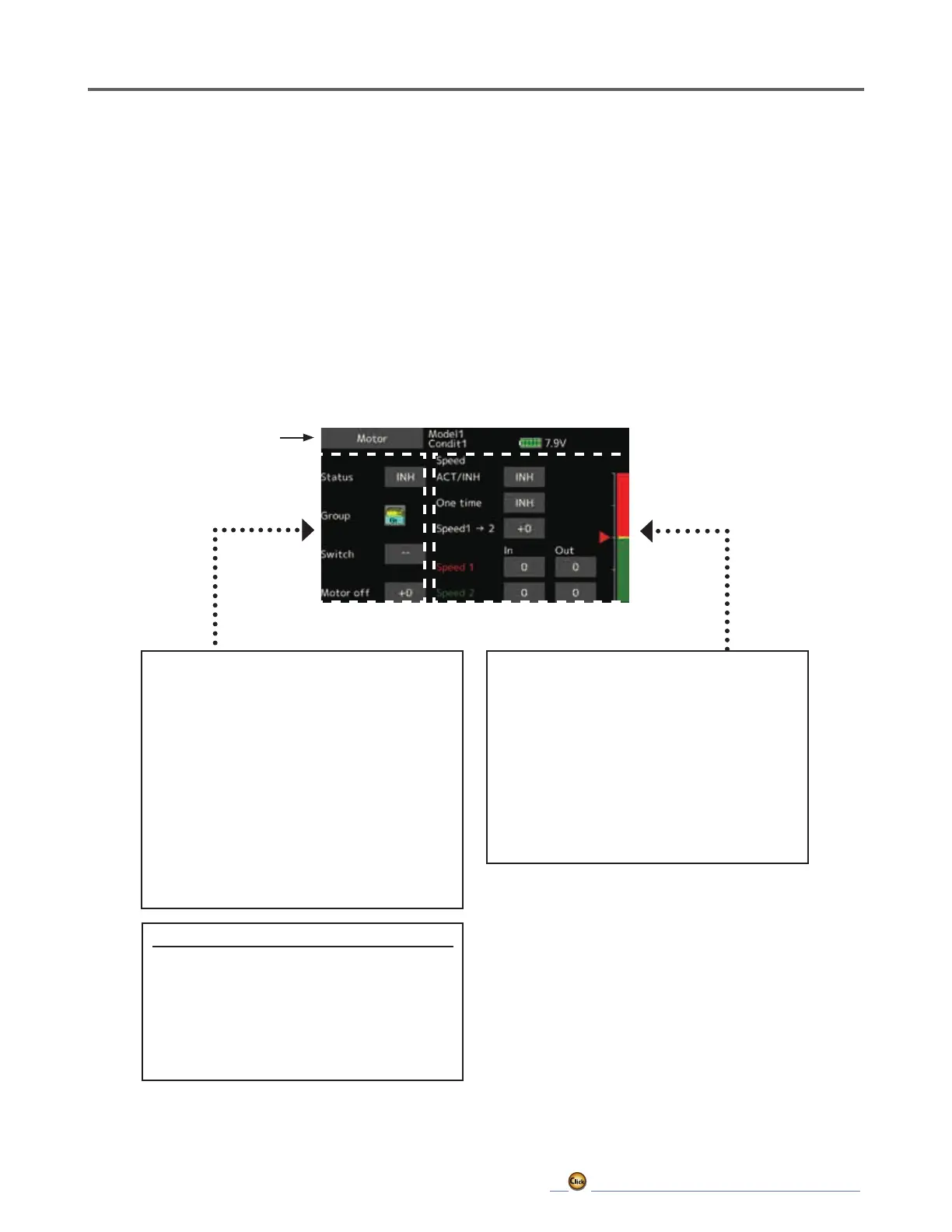 ● The motor (CH3) is controlled by SW-G. (Initial