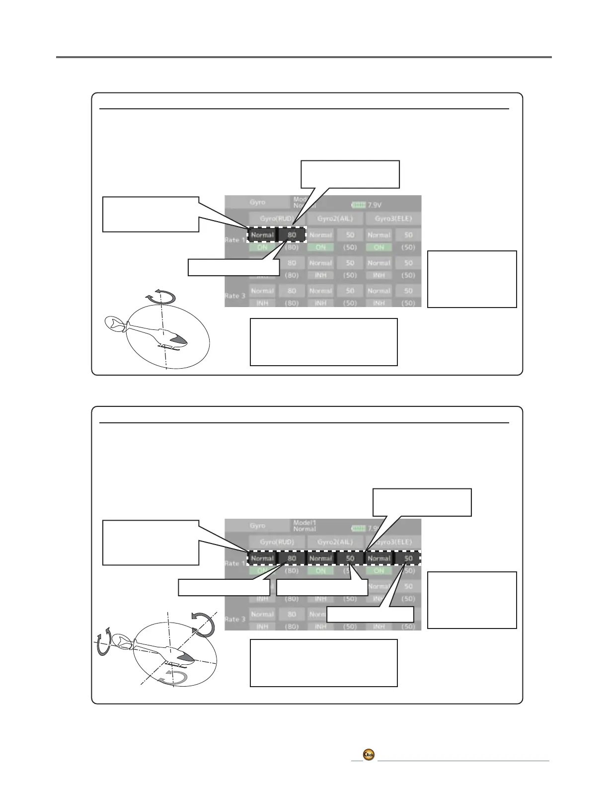 Usage example #2: Using 3-axis gyro CGY750 and adjusting sensitivity for each condition