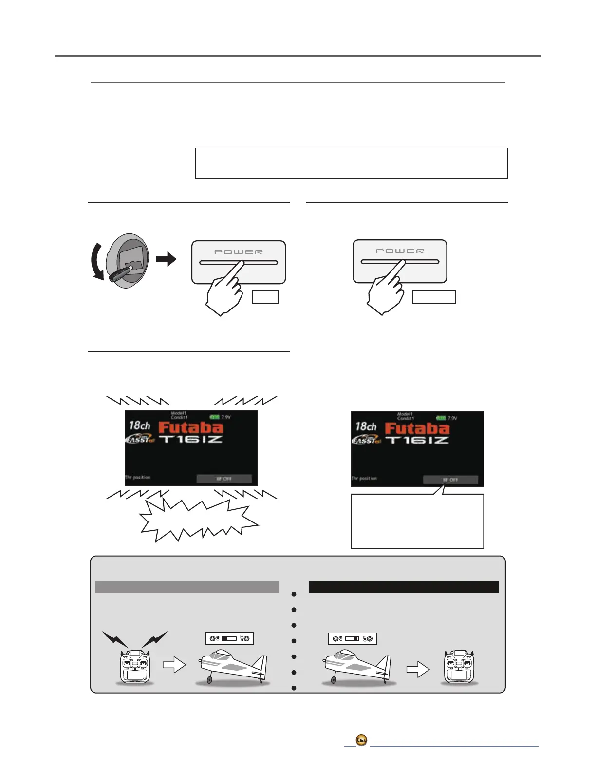 When turning on the power, the T16IZ transmitter will begin emitting RF automatically after it conrms