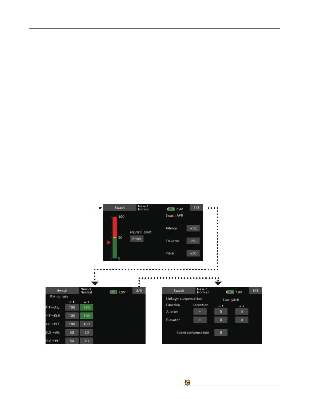 ELE to PIT (HR3 mode.) It adjusts the swash-
