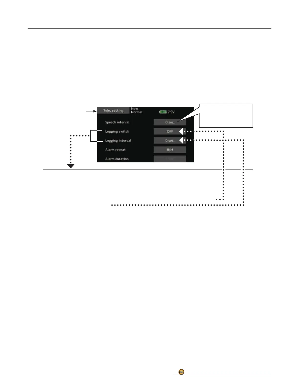 Set the switch set by Logging switch to OFF. A beeping sound is generated and recording of the telemetry data stops.
