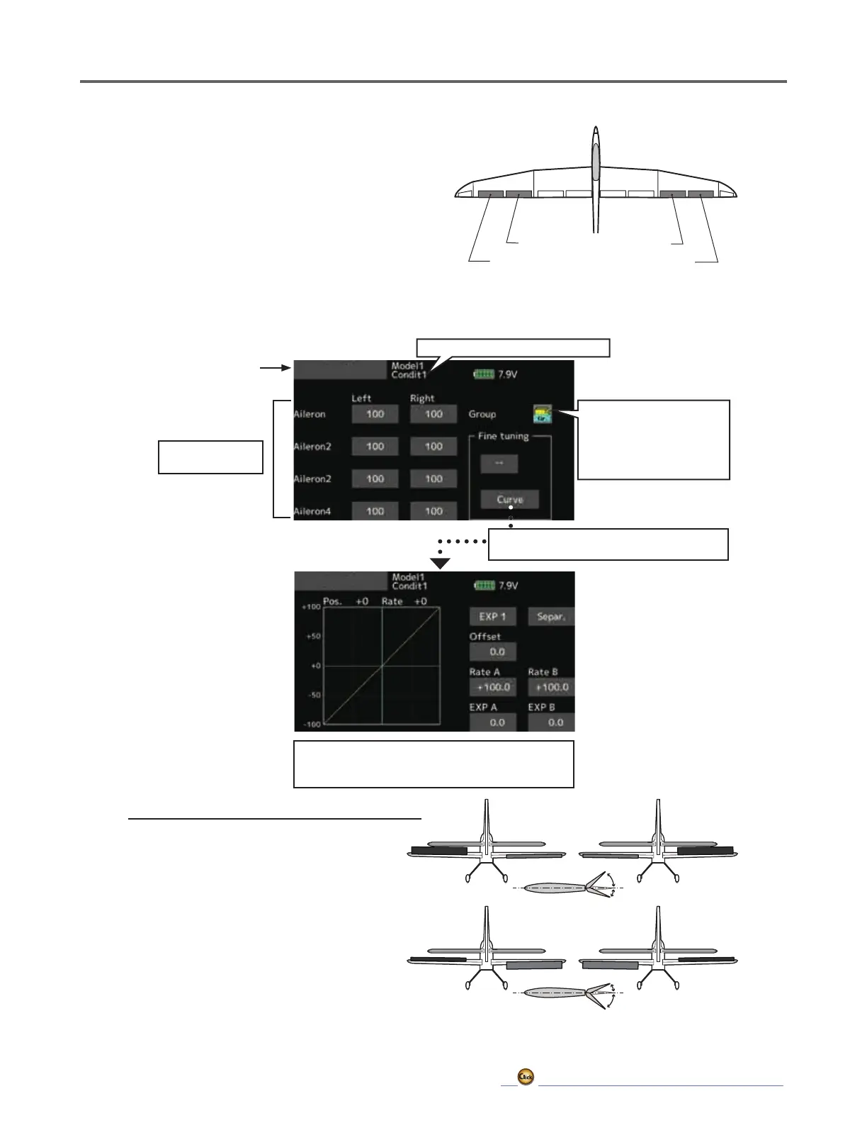 ● Tap to the aileron (AIL) 1~4(2) left (or right)