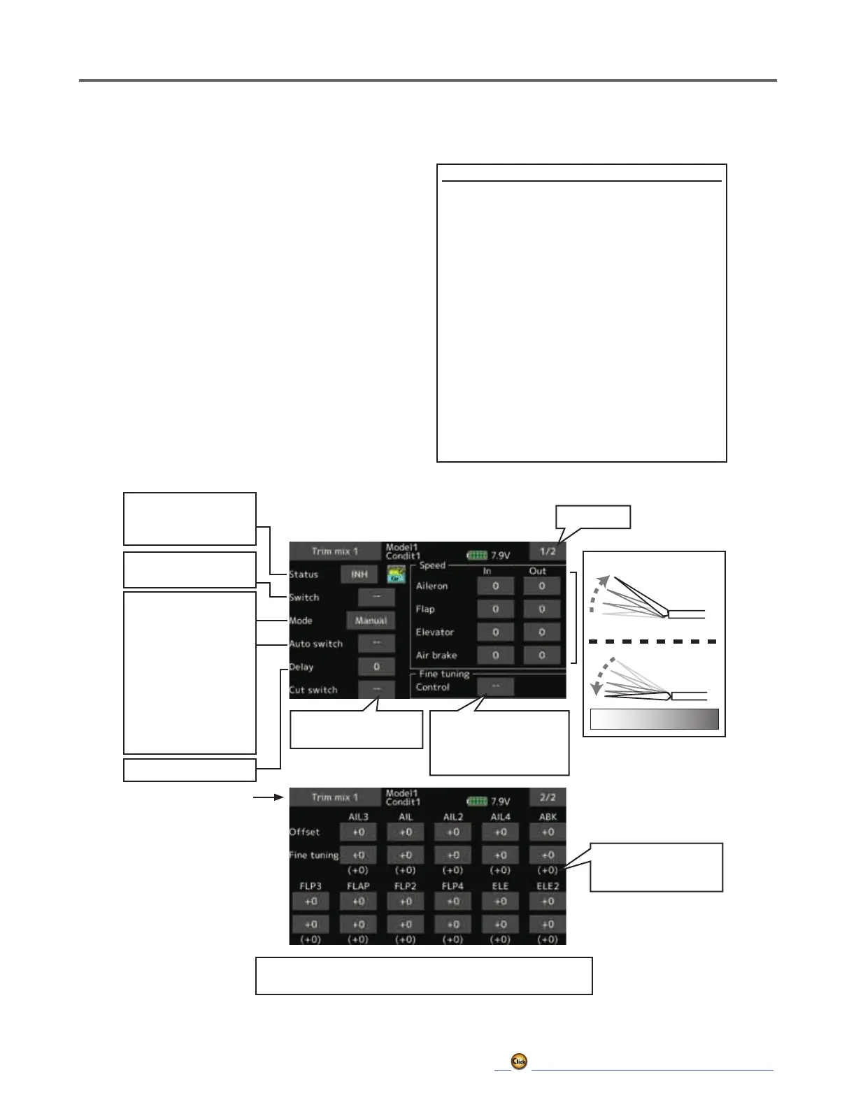 The oset rate of ailerons, aps and elevators can be adjusted.