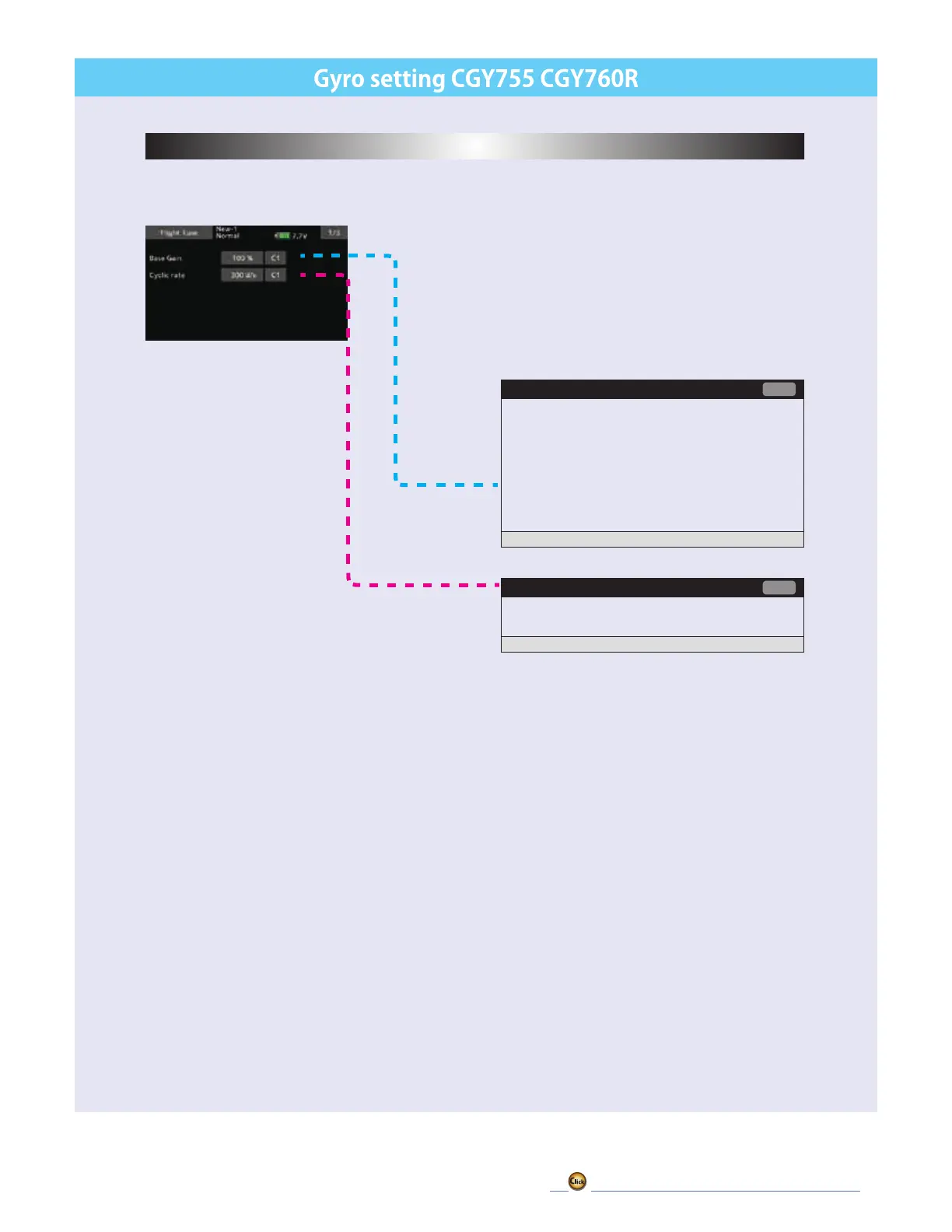 ing gain for the cyclic gyros is set by using the "Base Gain" button within