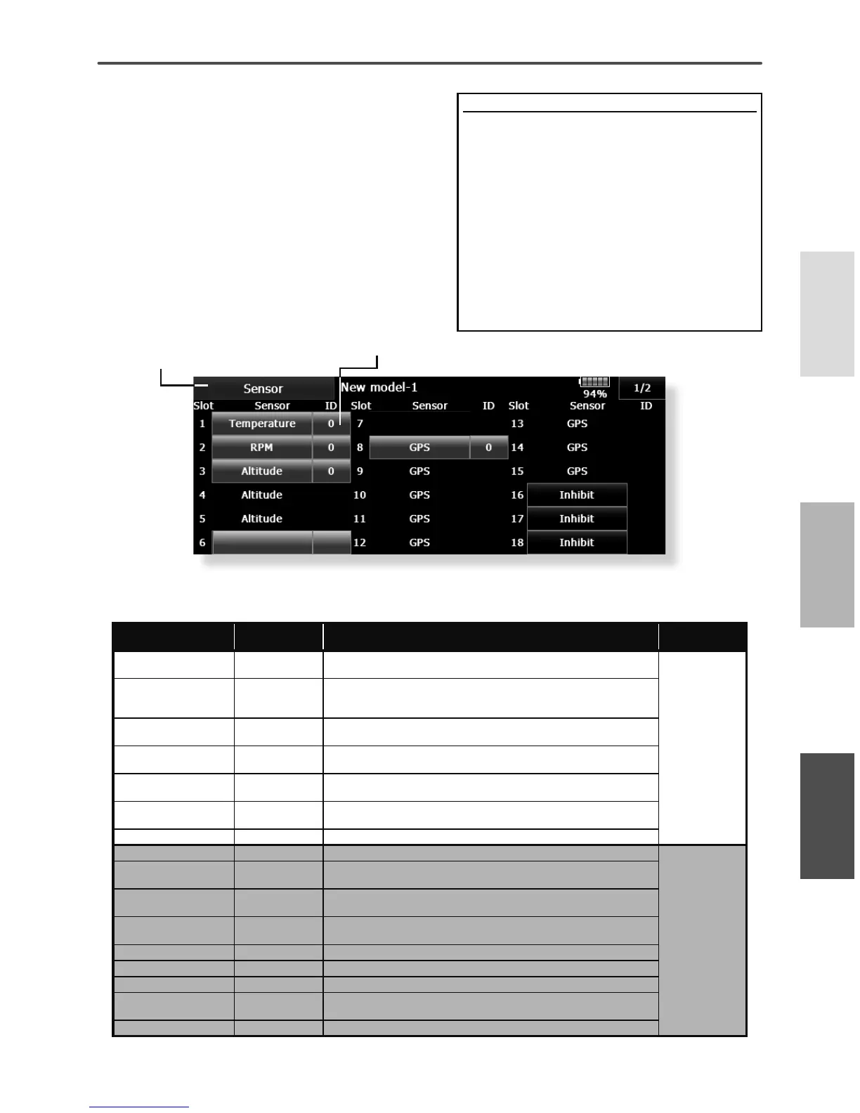 The telemetry sensor slot number and which sensor