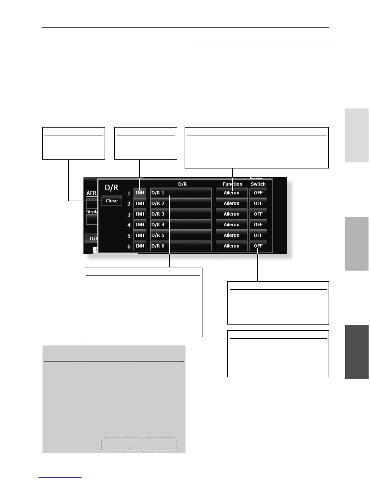 *D/R (Dual Rate) is set for each condition, and is not reÀected