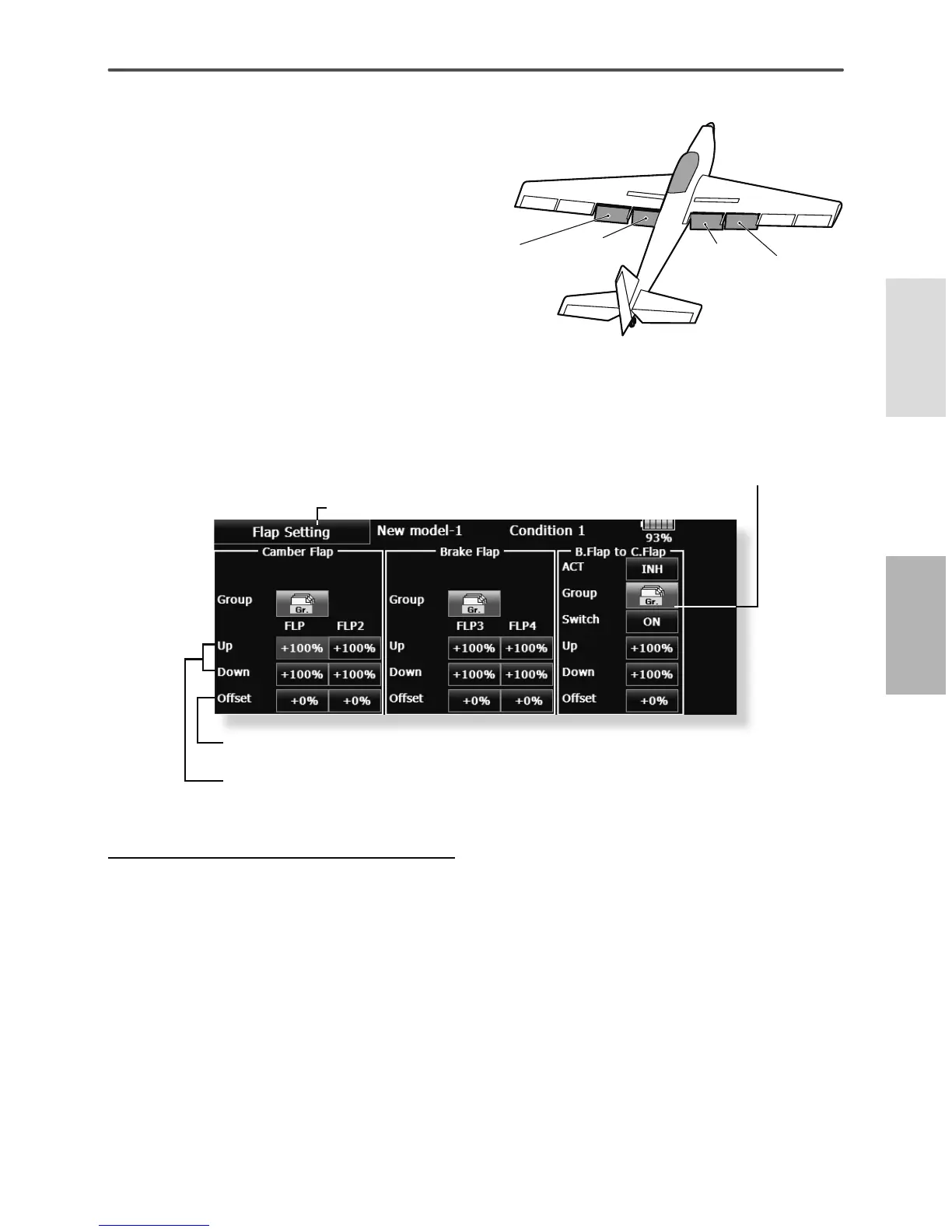 FLP1/2, brake flaps: FLP3/4) can be adjusted