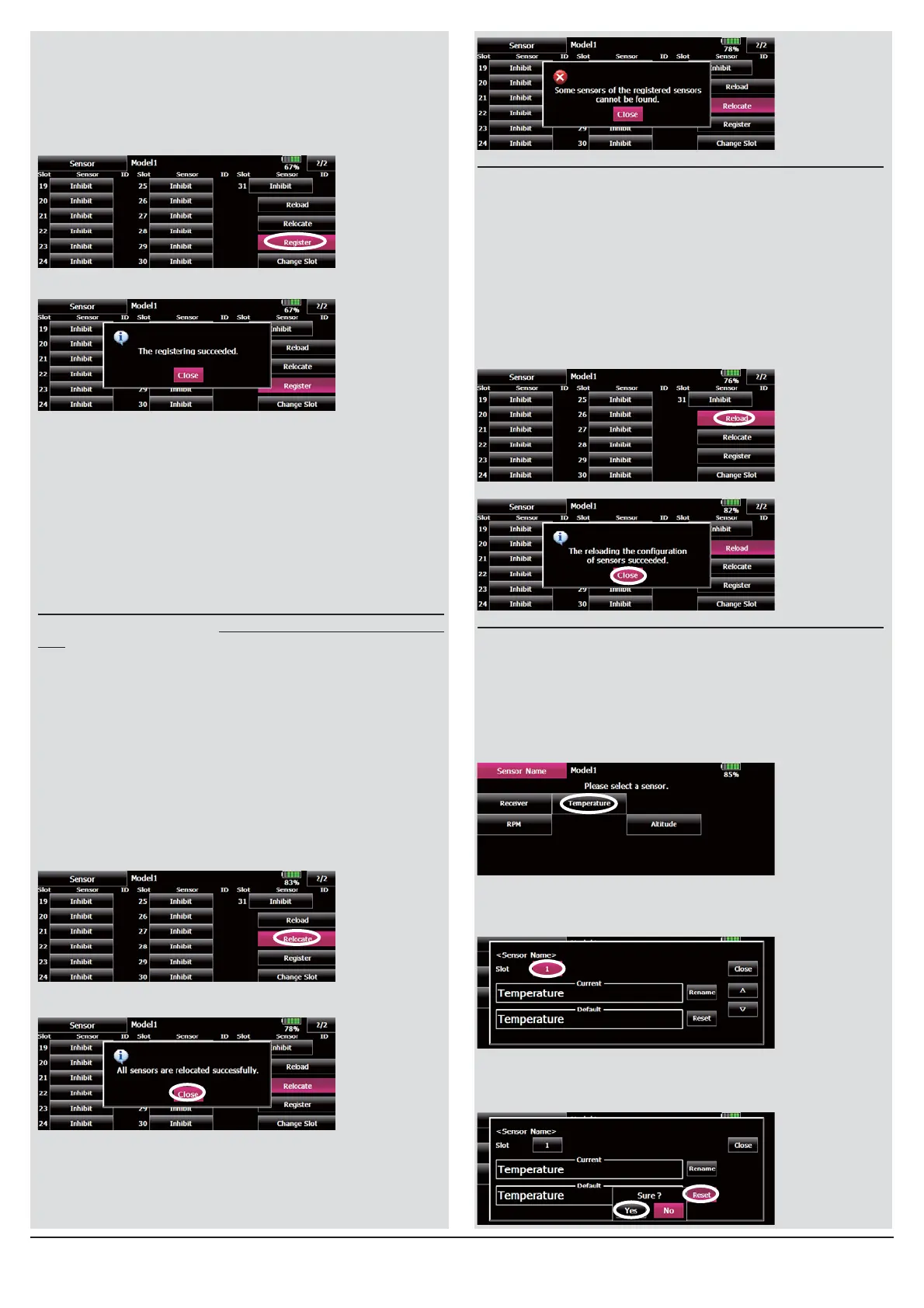 ③ Touch the 1/2 to enter the second page of the sensor screen. Then,