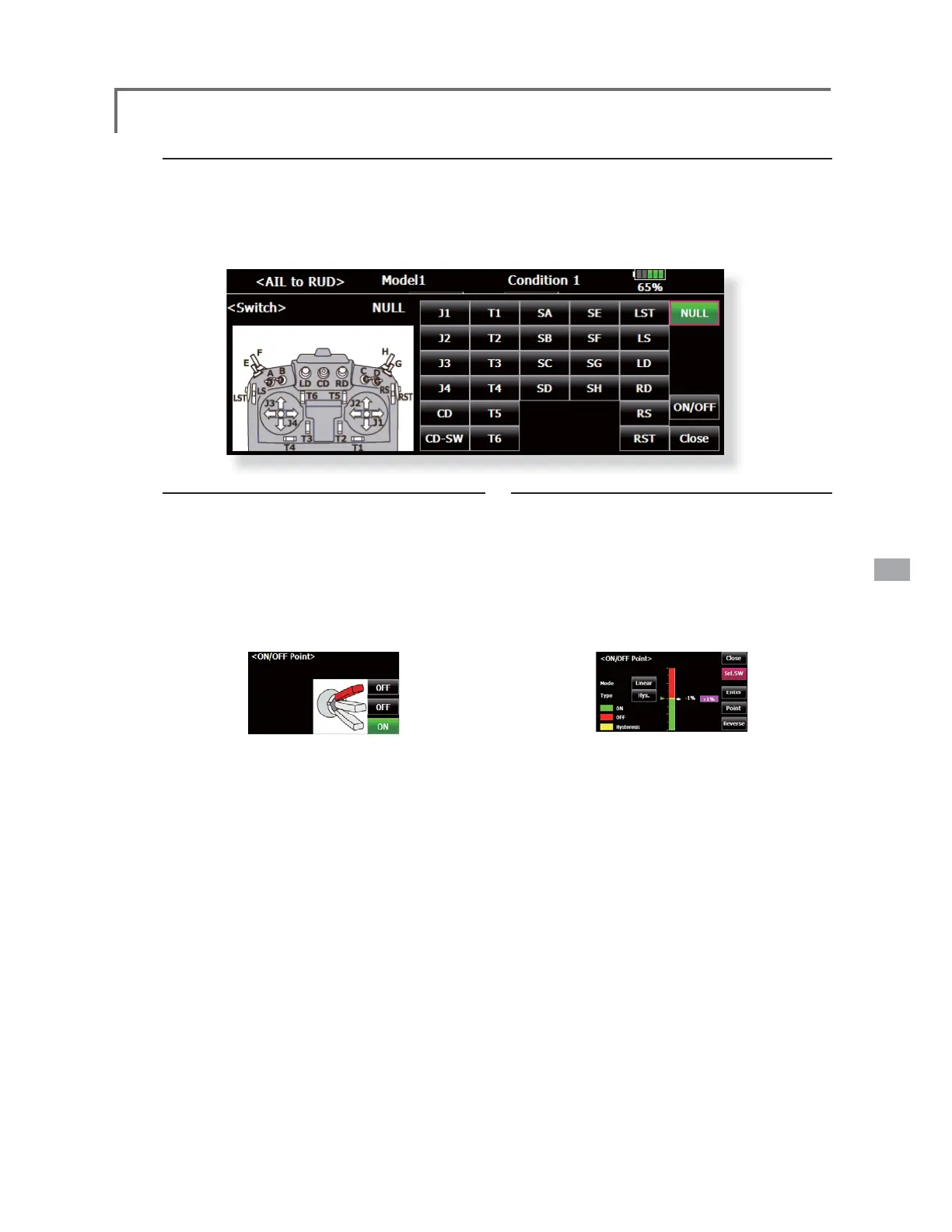 When the switch selection button in switch mode selection screen or the logic switch setting screen is