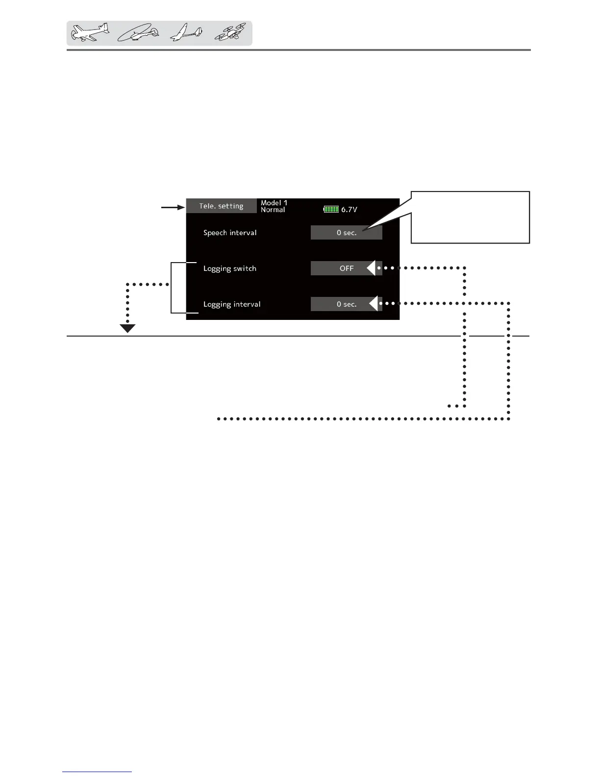 ③ Set the switch set by Logging switch to OFF. A beeping sound is generated and recording of the telemetry data stops.