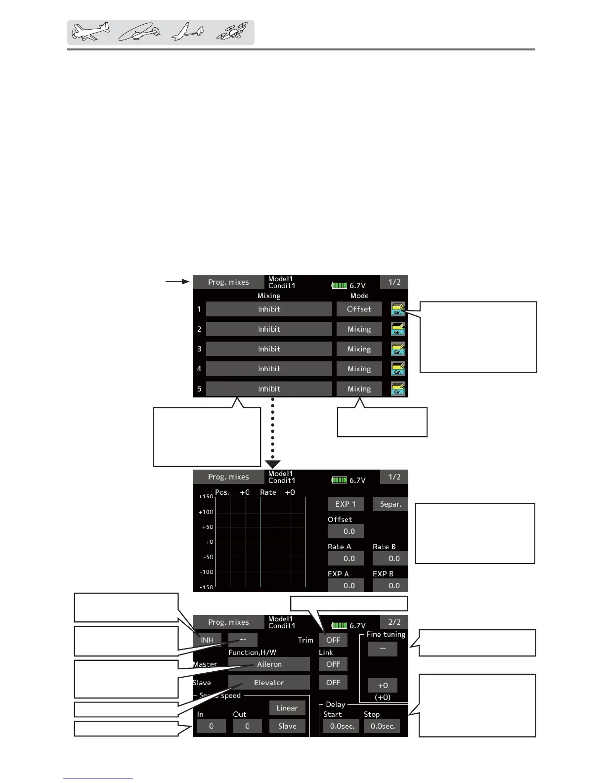 ŏ Tap the [Prog. mixes] button in the Model menu to call