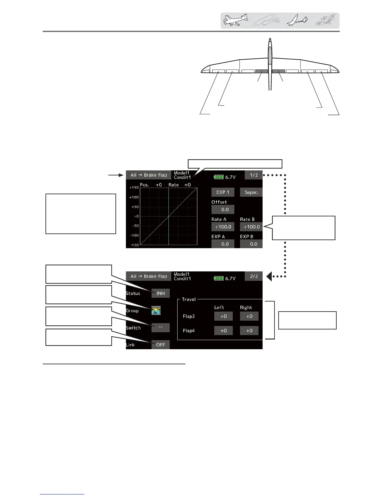 < Modelmenu(Airplane/Glider/MulticopterFunctions) >