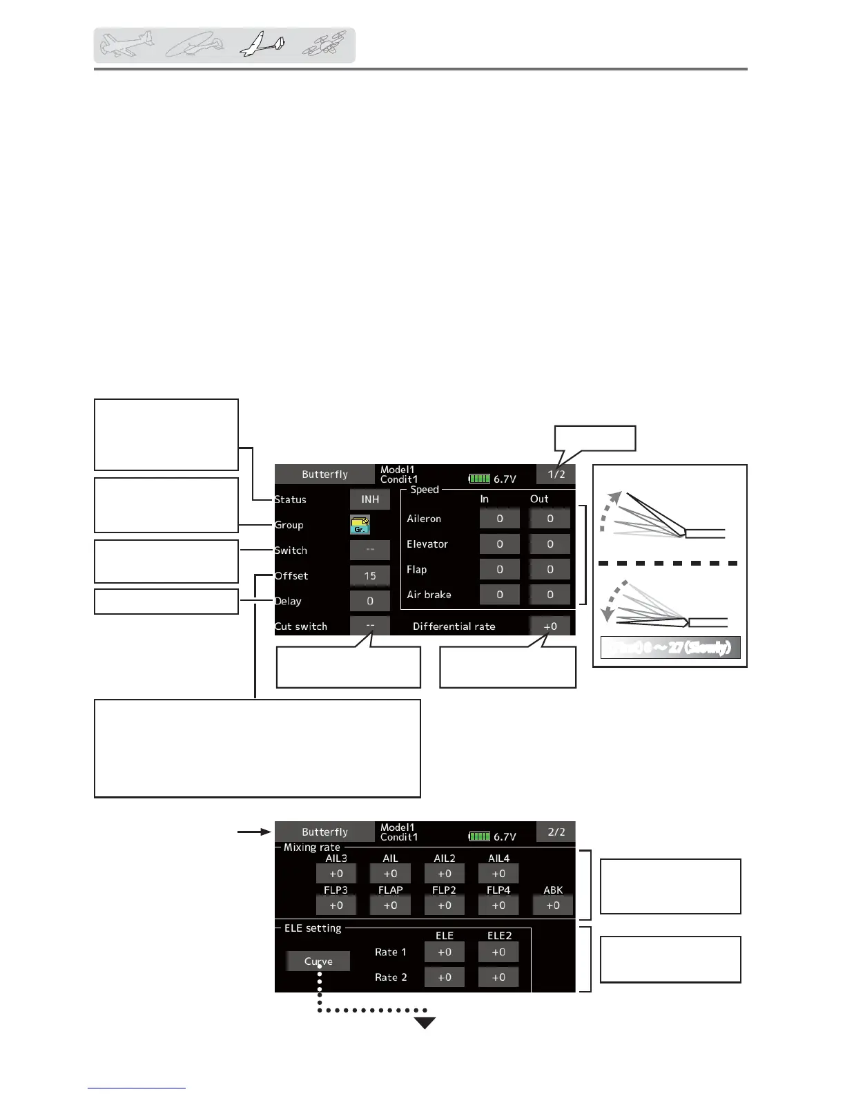 < Modelmenu(Airplane/Glider/MulticopterFunctions) >