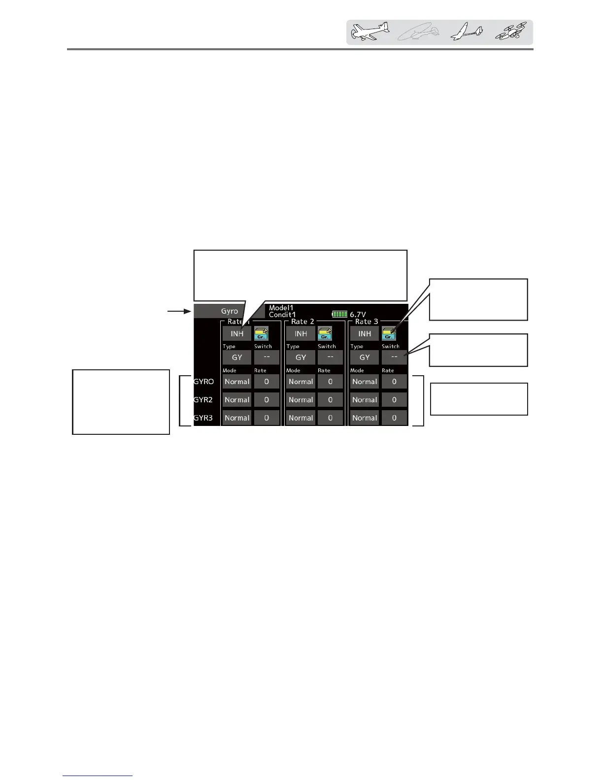 ŏ When a Futaba GYA gyro is used, when [GY] type is selected, the