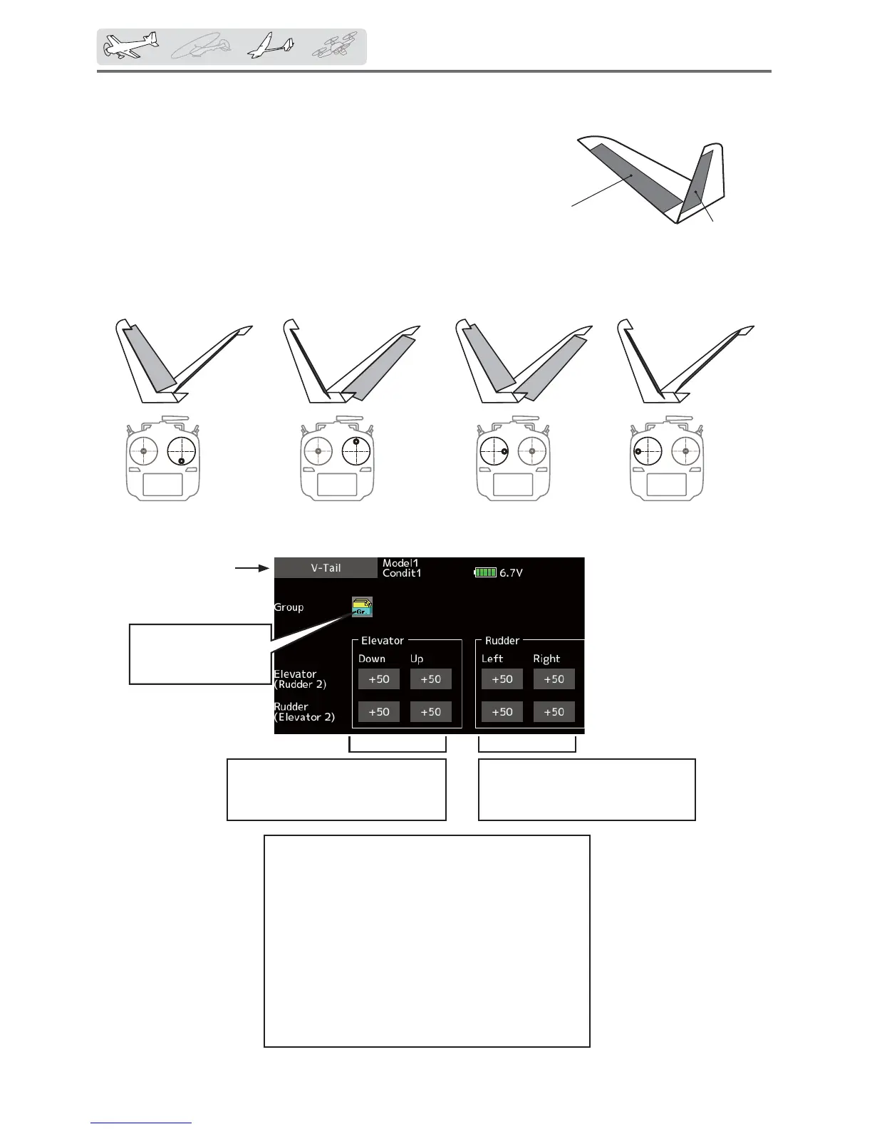 [Corresponding model type]: Airplane/glider, Tail type V-tail
