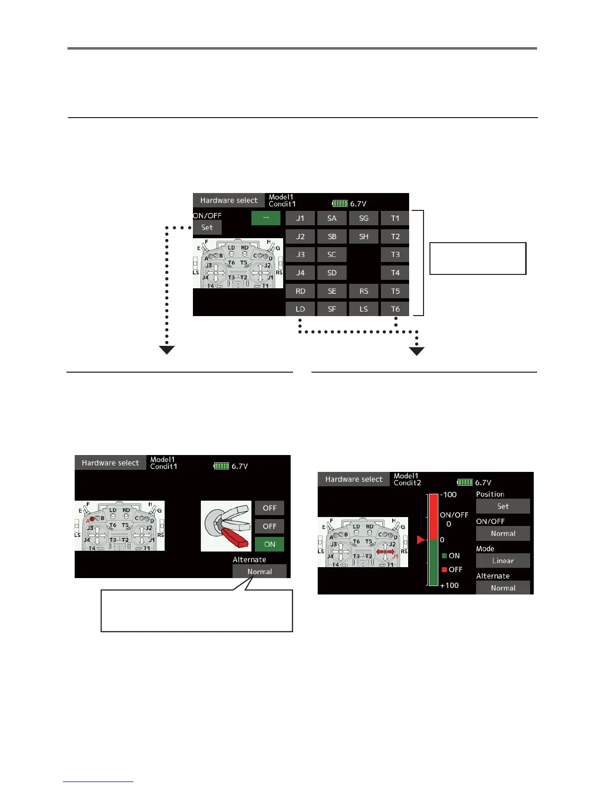 The various functions used in the T18SZ can be selected by switch. The switch (including when stick,