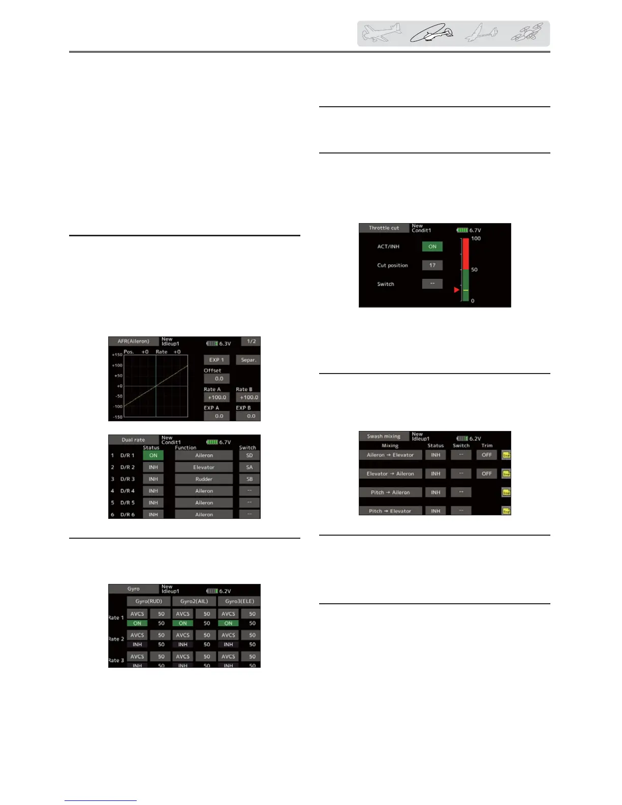 ŏIdle up 1/Idle up 2/Throttle hold: Gyro