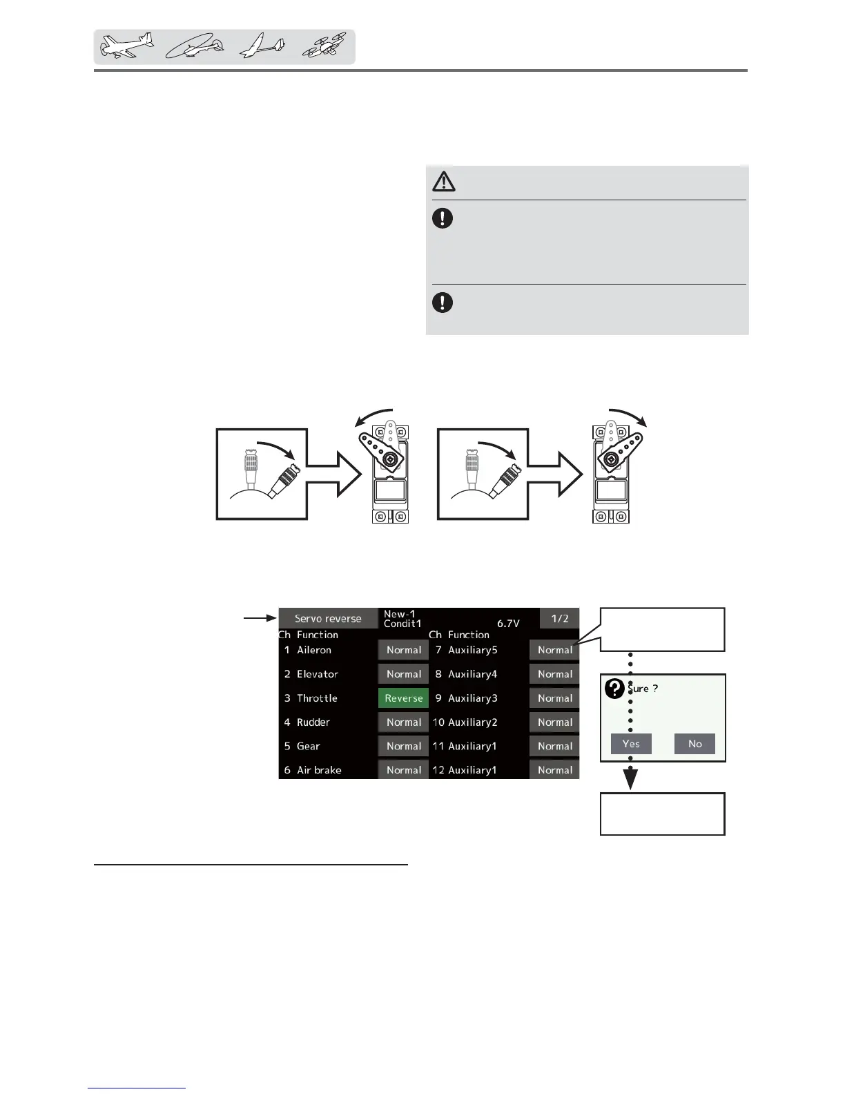 ŏ Tap the [Servo reverse] button in the Linkage