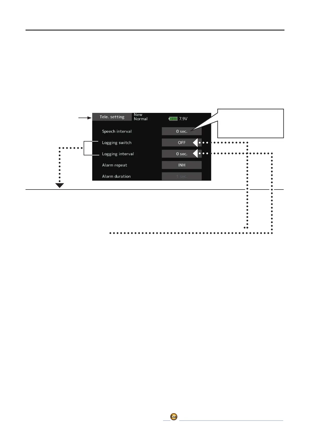 ③ SettheswitchsetbyLoggingswitchtoOFF.Abeepingsoundisgeneratedandrecordingofthetelemetrydata