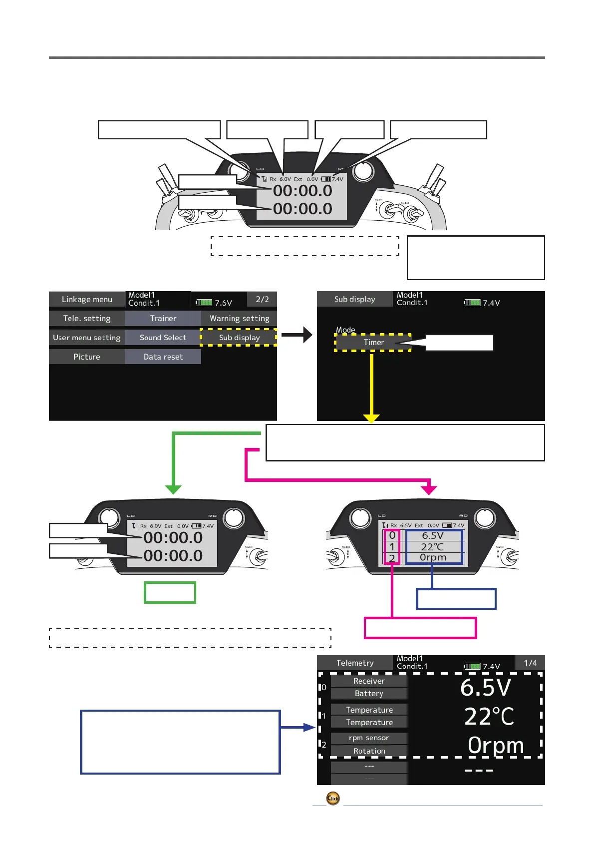 ● Telemetry:Telemetrydataisdisplayedonthesubdisplay