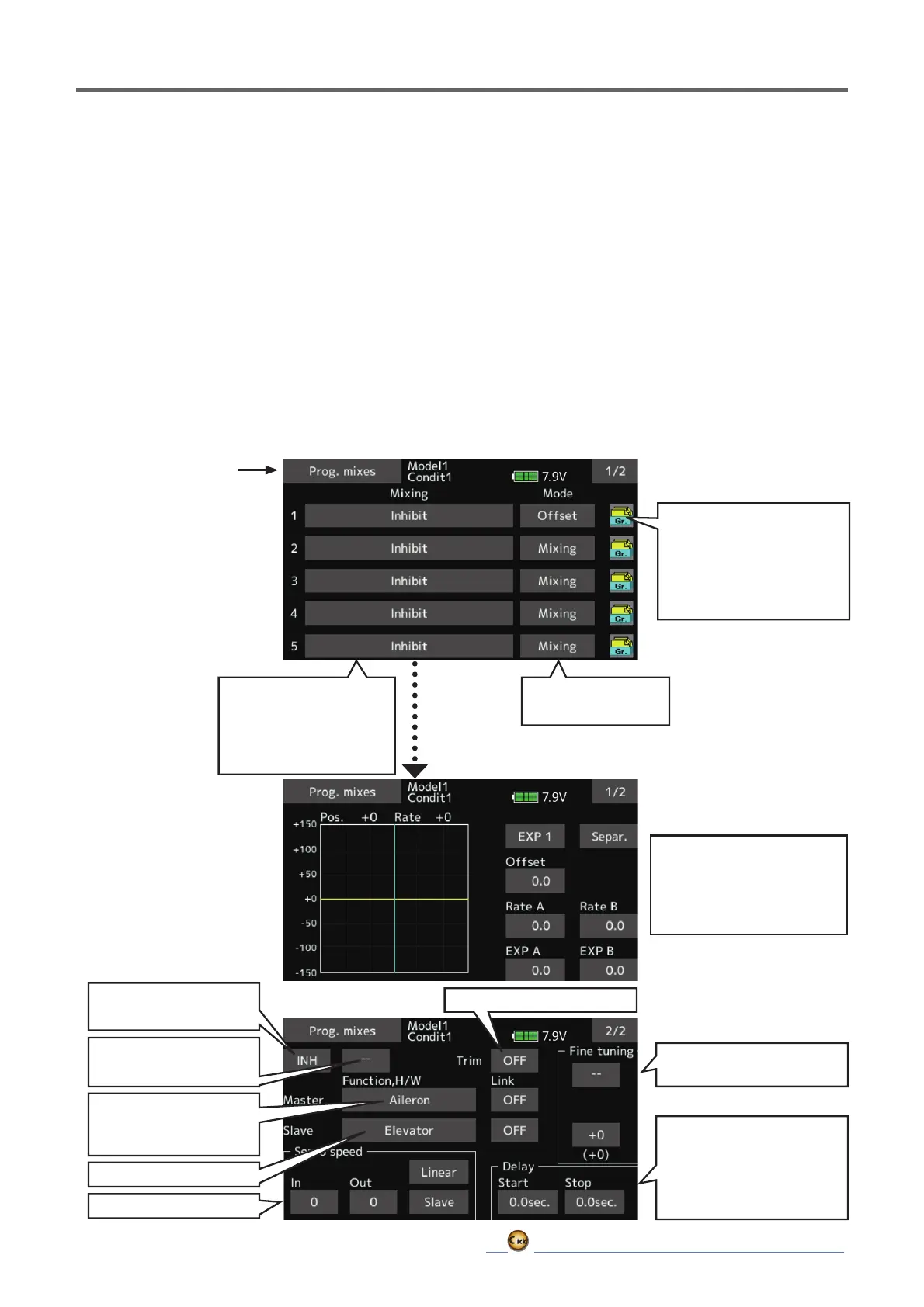 Tap the [Prog. mixes] button in the Model menu to call the