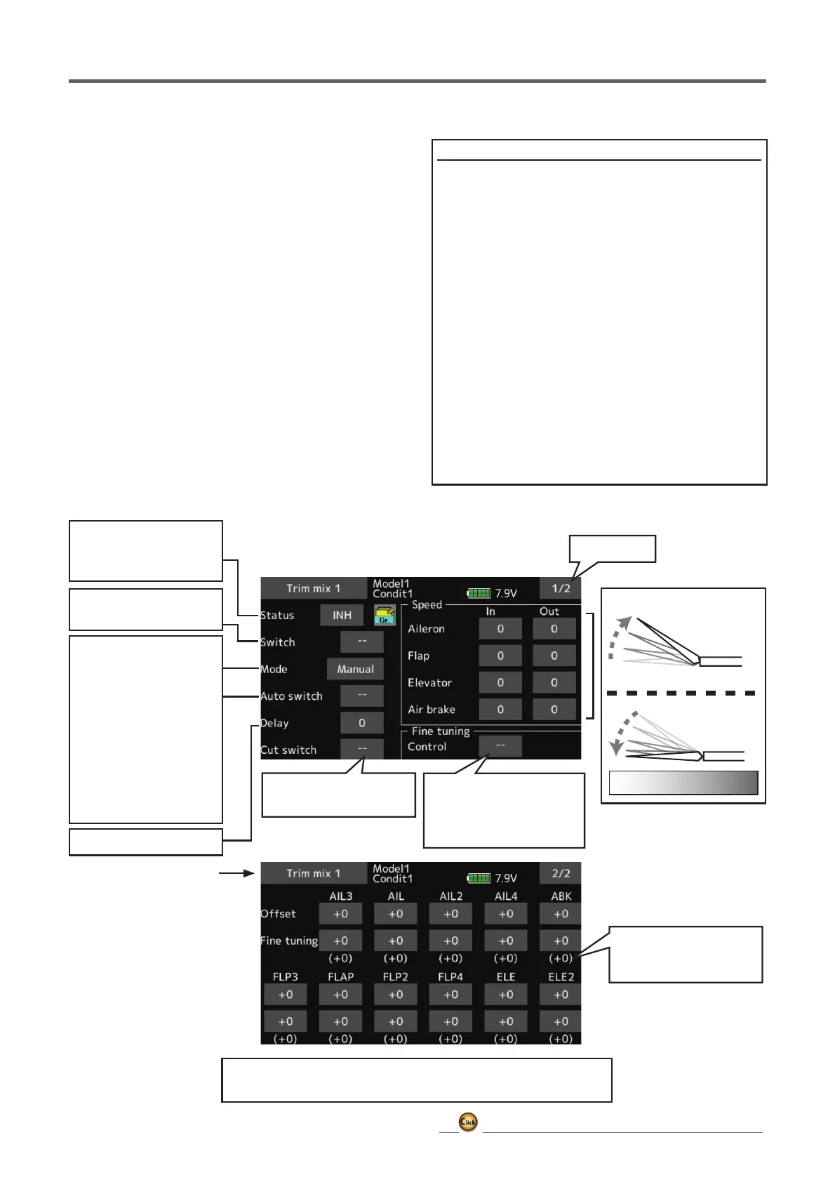 Theoffsetrateofailerons,flapsandelevatorscanbeadjusted.
