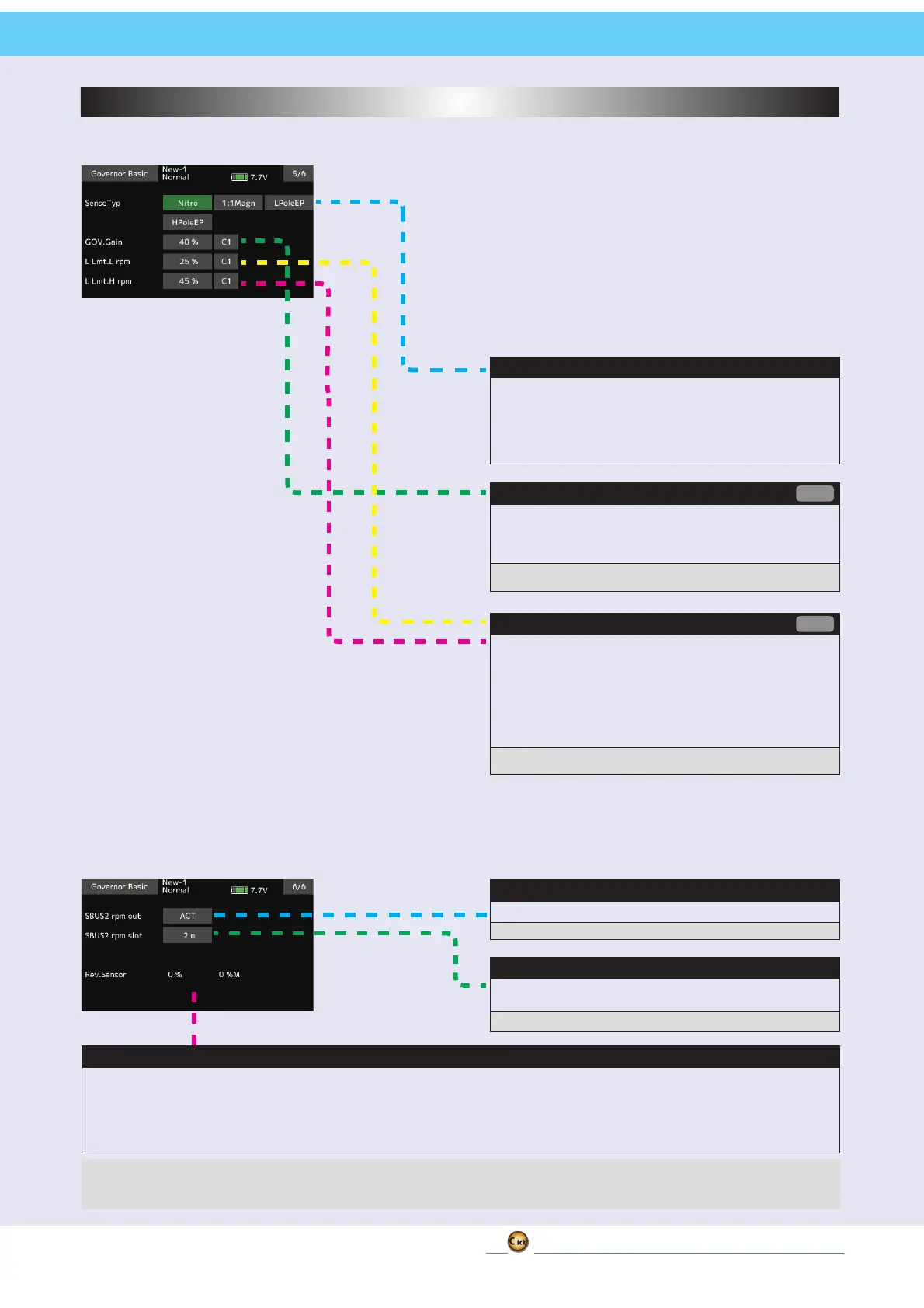 Bythetelemetryfunction,thenumberofrevolutionsreadbythegovernorsensorcanbedisplayedonthemonitorofthetransmitter.Inordertobeabletodisplay,activatethetelem-