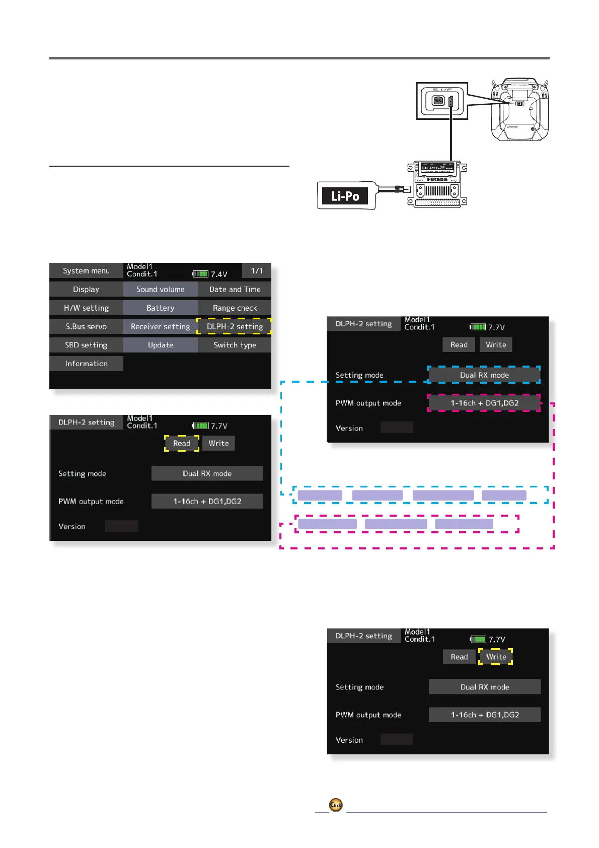 Connect the RX1 port of the DLPH-2 and the S.I/F