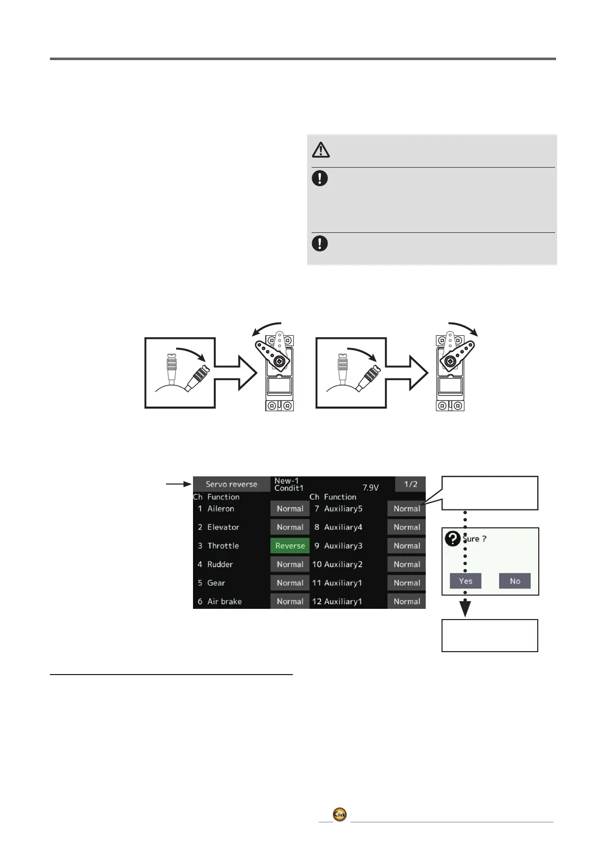 Tap the [Servo reverse] button in the Linkage menu to