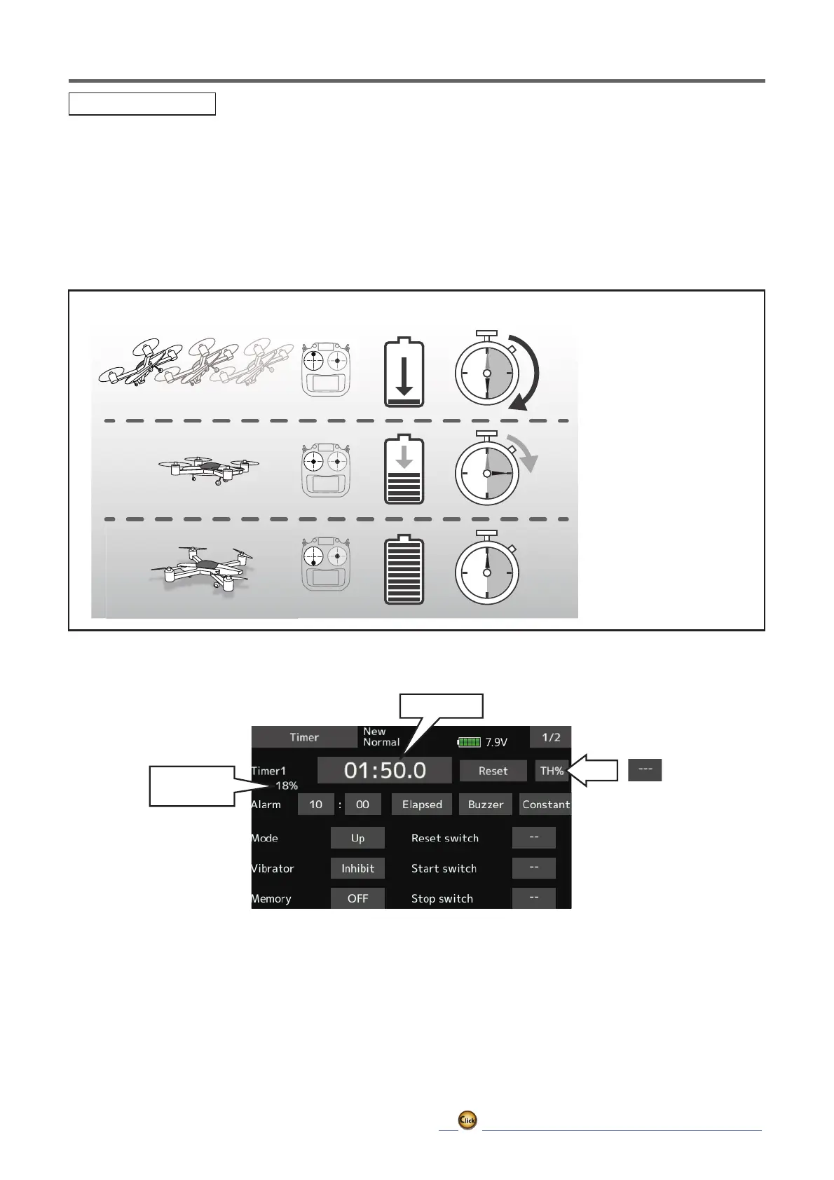 increases. With the throttle stick at mid-range speed, the timer speed decreases (to 50%). When the