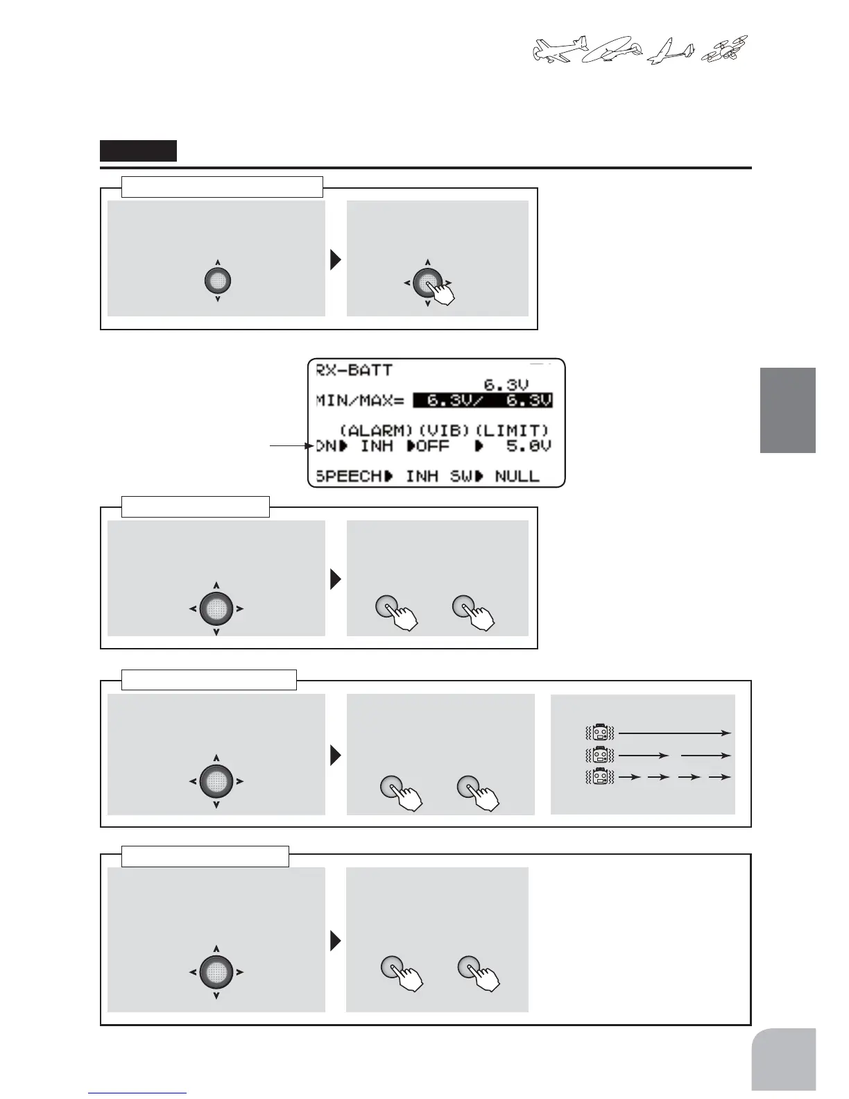 Usethissettingtosoundanalarmwhenthereceiverbatteryvoltagedropsdangerouslylow.VIB