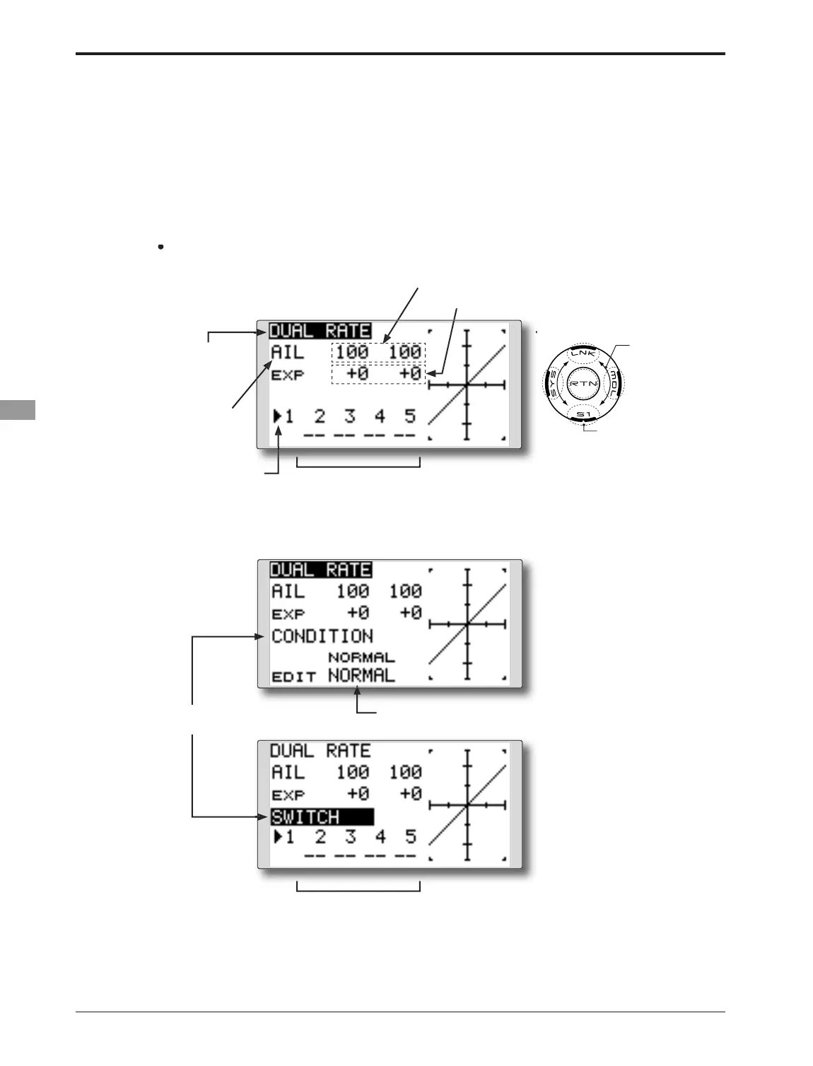 knuppel- beweging is, b.v. '80% uitslag = 100% reactie". Er zijn 5 instellingen op te slaan.