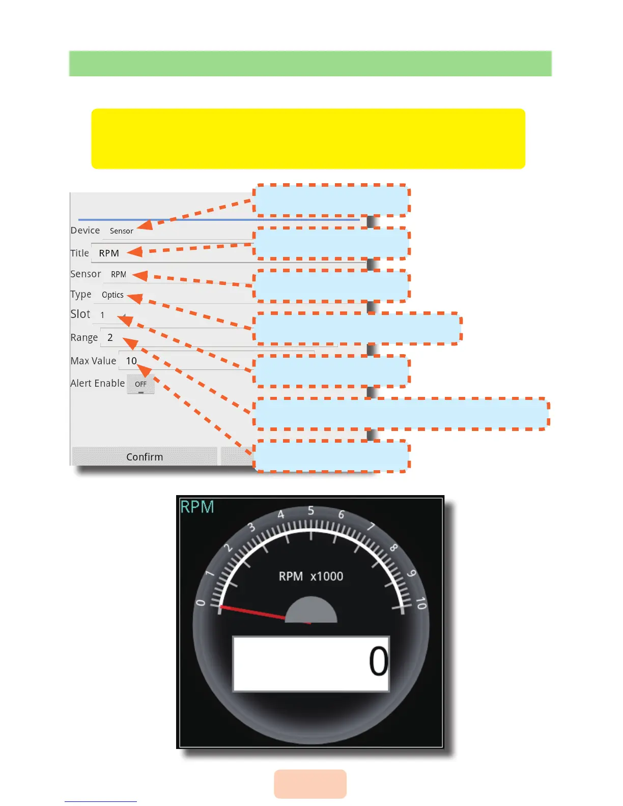 FUTABA TMA-1 - TMA-1 RPM Sensor Configuration; Setting Up RPM Display; Selecting RPM Types and Limits