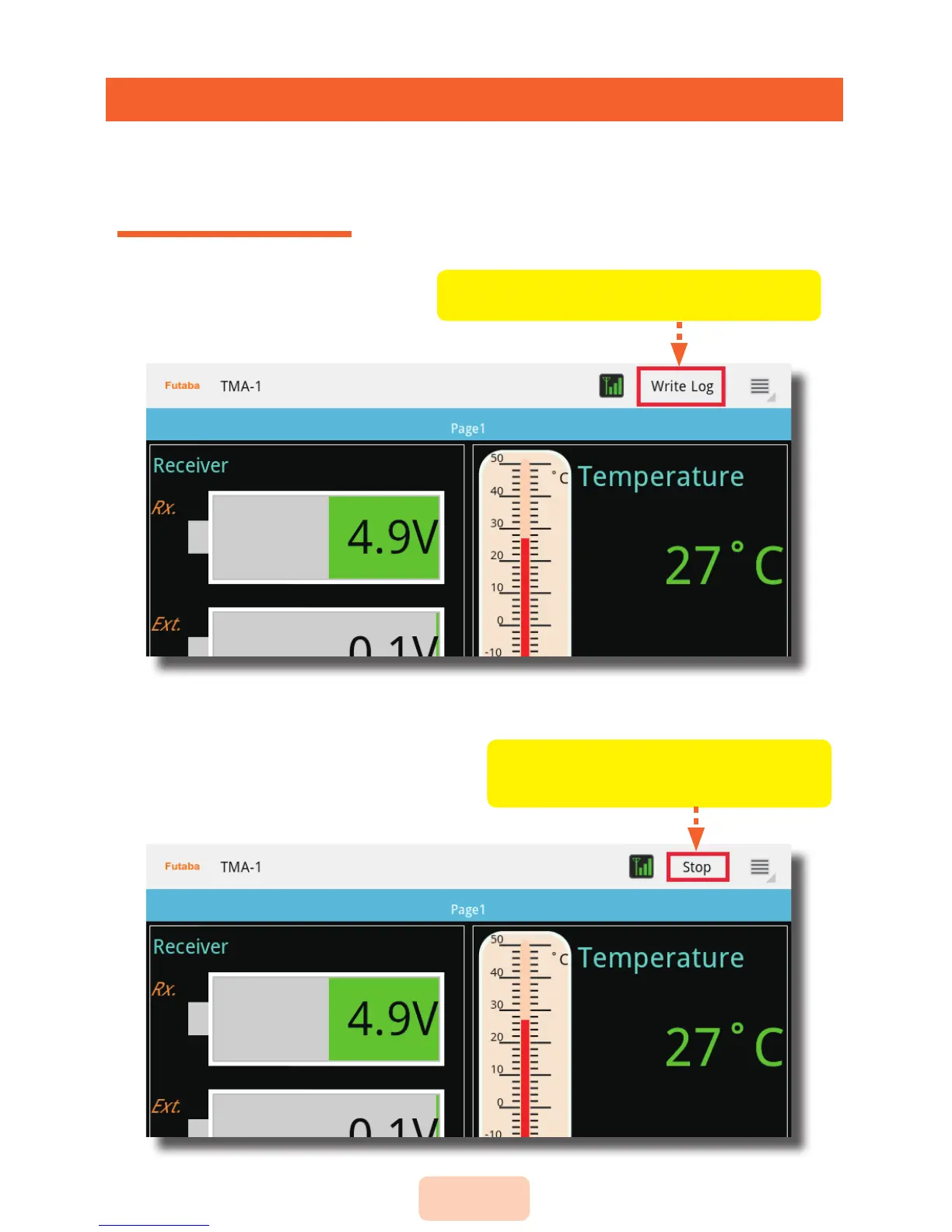 FUTABA TMA-1 - TMA-1 Data Logging Operations; Starting and Stopping Data Logging
