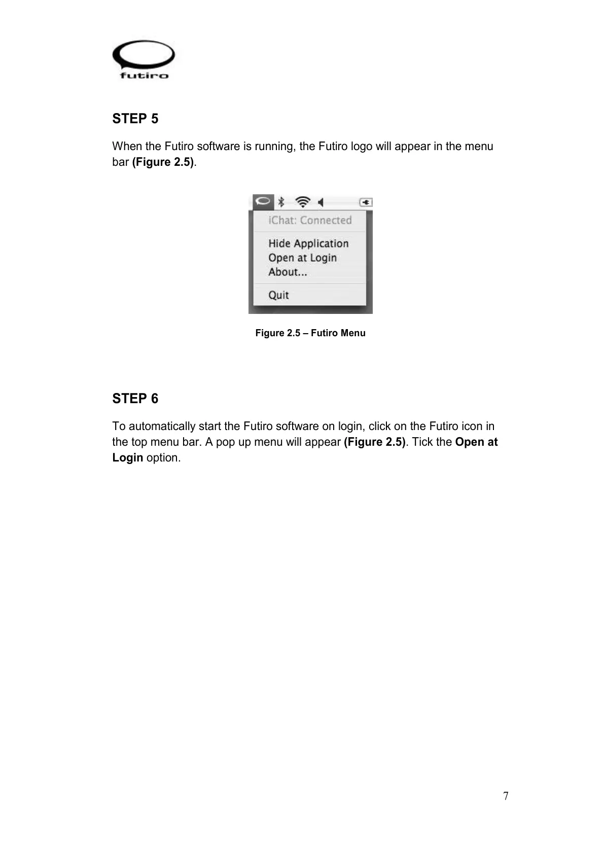 When the Futiro software is running, the Futiro logo will appear in the menu
