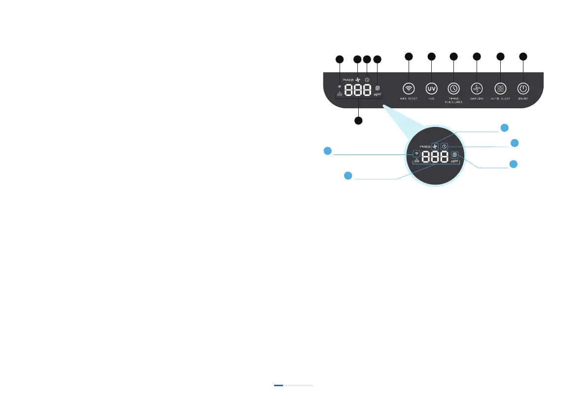 3. AIRFLOW: Short press the buon and switch to speed
