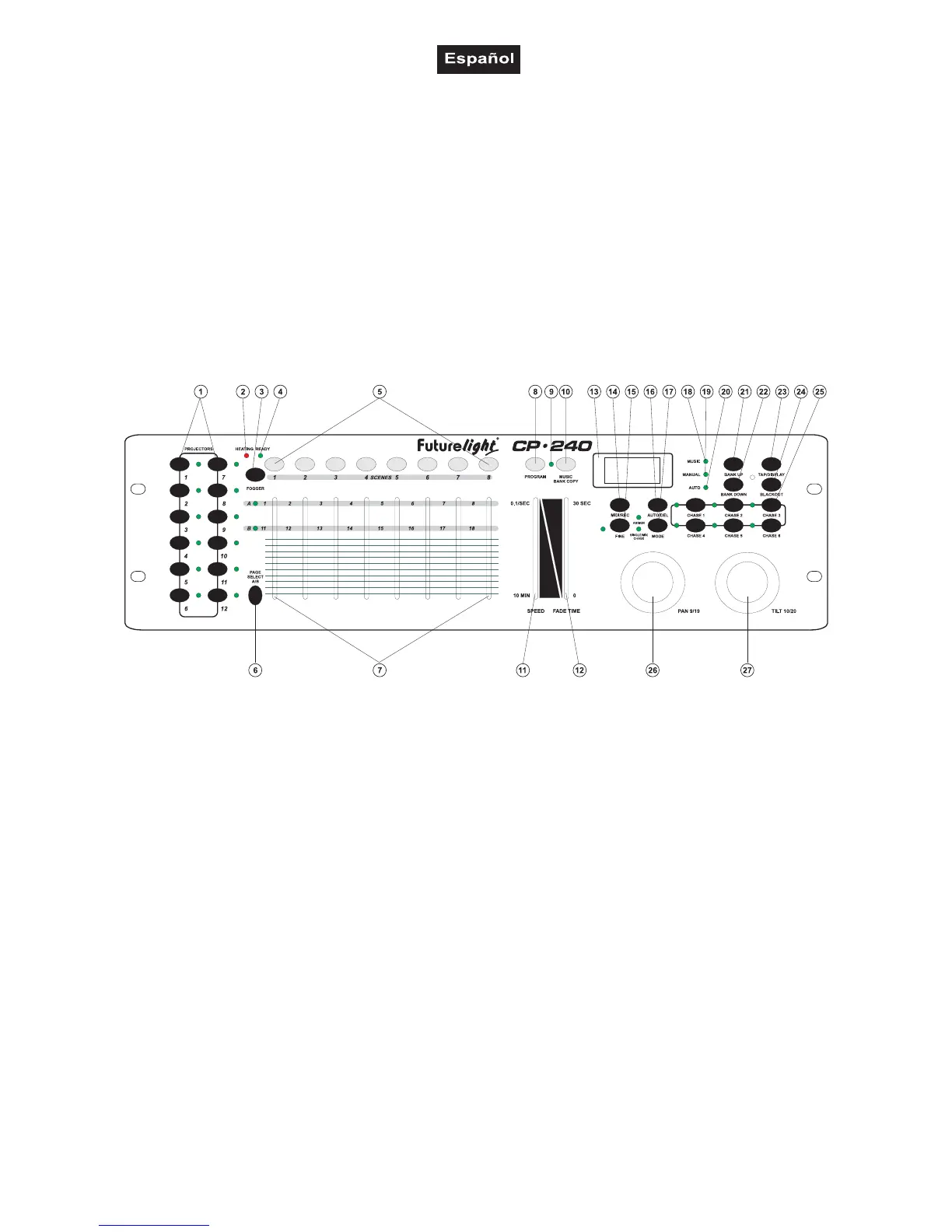 Para ajustar los valores DMX. Los canales 1-8 pueden ser ajustados en mover el fader respectivo