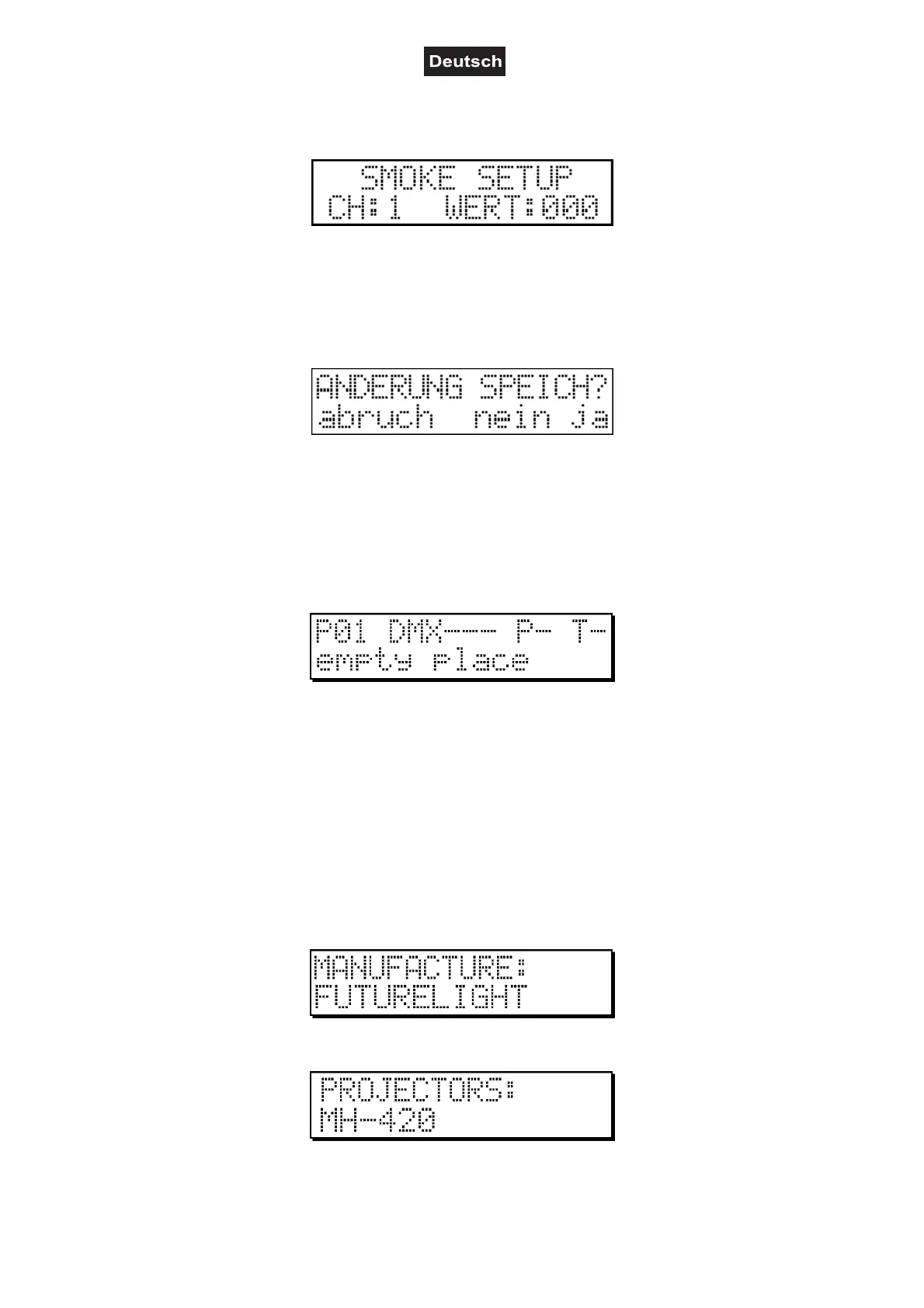 gehören zu dieser Position. Danach erscheint die Dmx-Adresse der aktuellen Position, der gewählte