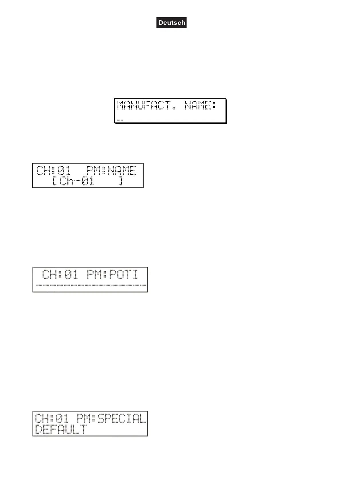 In der oberen Zeile erscheinen die aktuelle Kanalnummer und die Bezeichnung der aktuellen Parameter. In