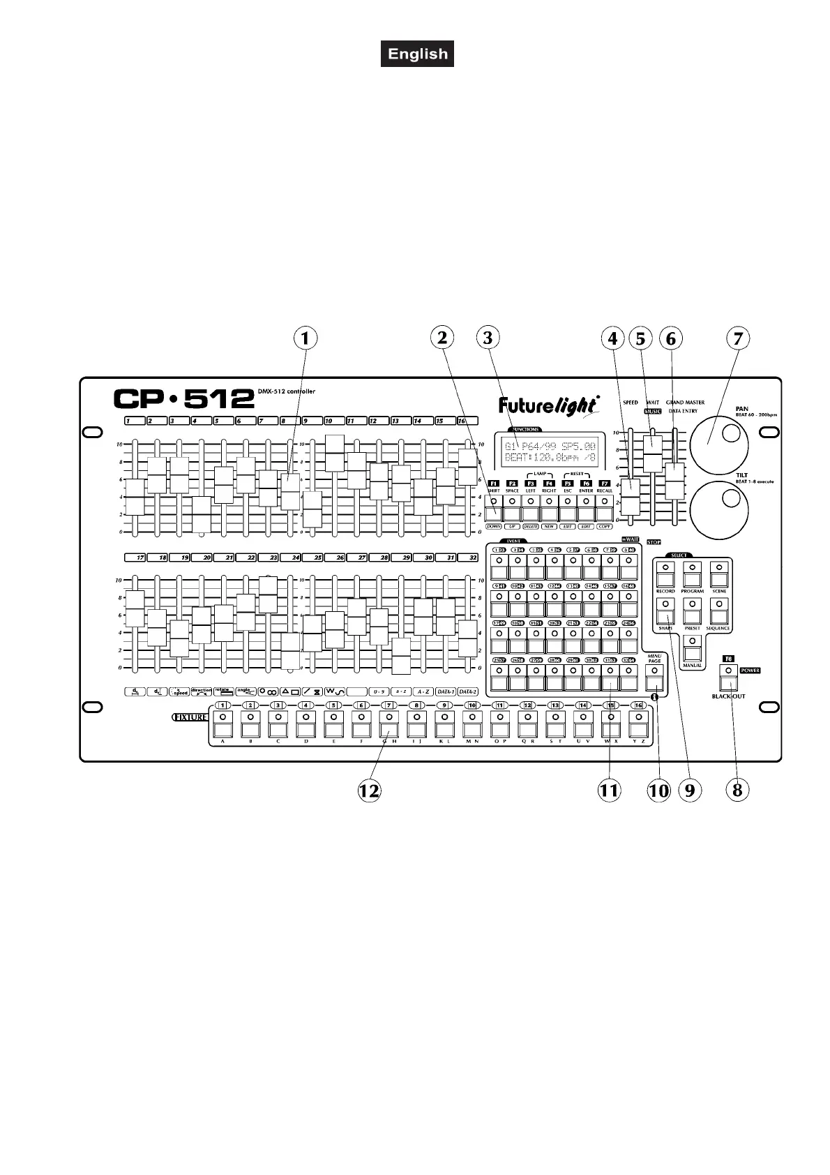 6. DATA ENTRY potentiometer: In automatic mode it operates as GRAND MASTER, it sets the intensity of