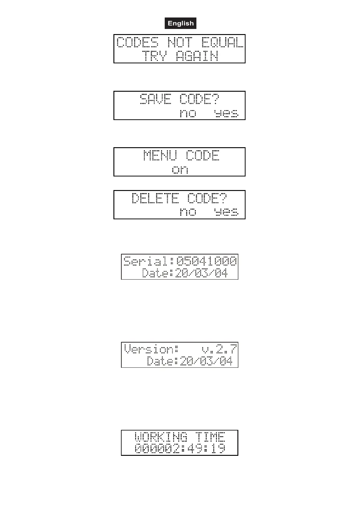 When the new and repeated code are identical the controller asks you to save the code. Press ENTER to