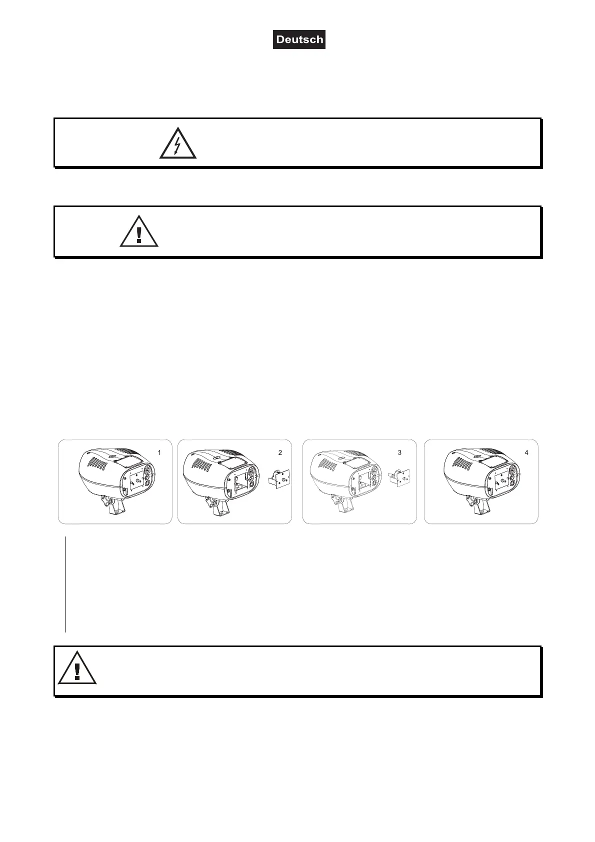 Schalten Sie das Gerät niemals ein, ohne vorher alle Abdeckungen geschlossen zu haben!