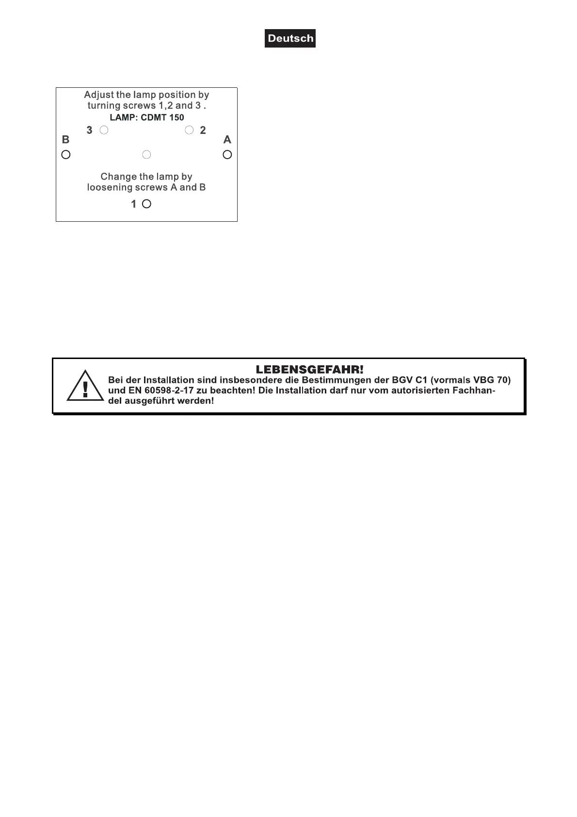 Beleuchterbrücken, unter hochgelegenen Arbeitsplätzen sowie an sonstigen Gefahrbereichen verboten.