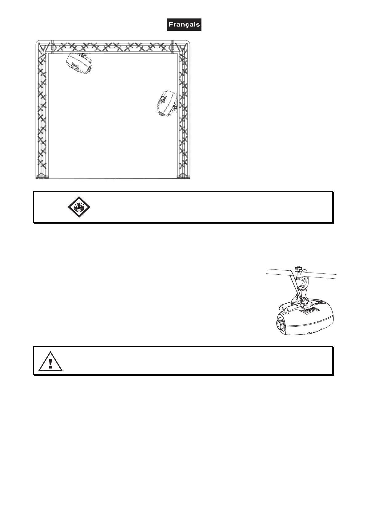 Toujours assurez le projecteur avec une élingue de sécurité, qui est dimensionnée au moins pour 12 fois le