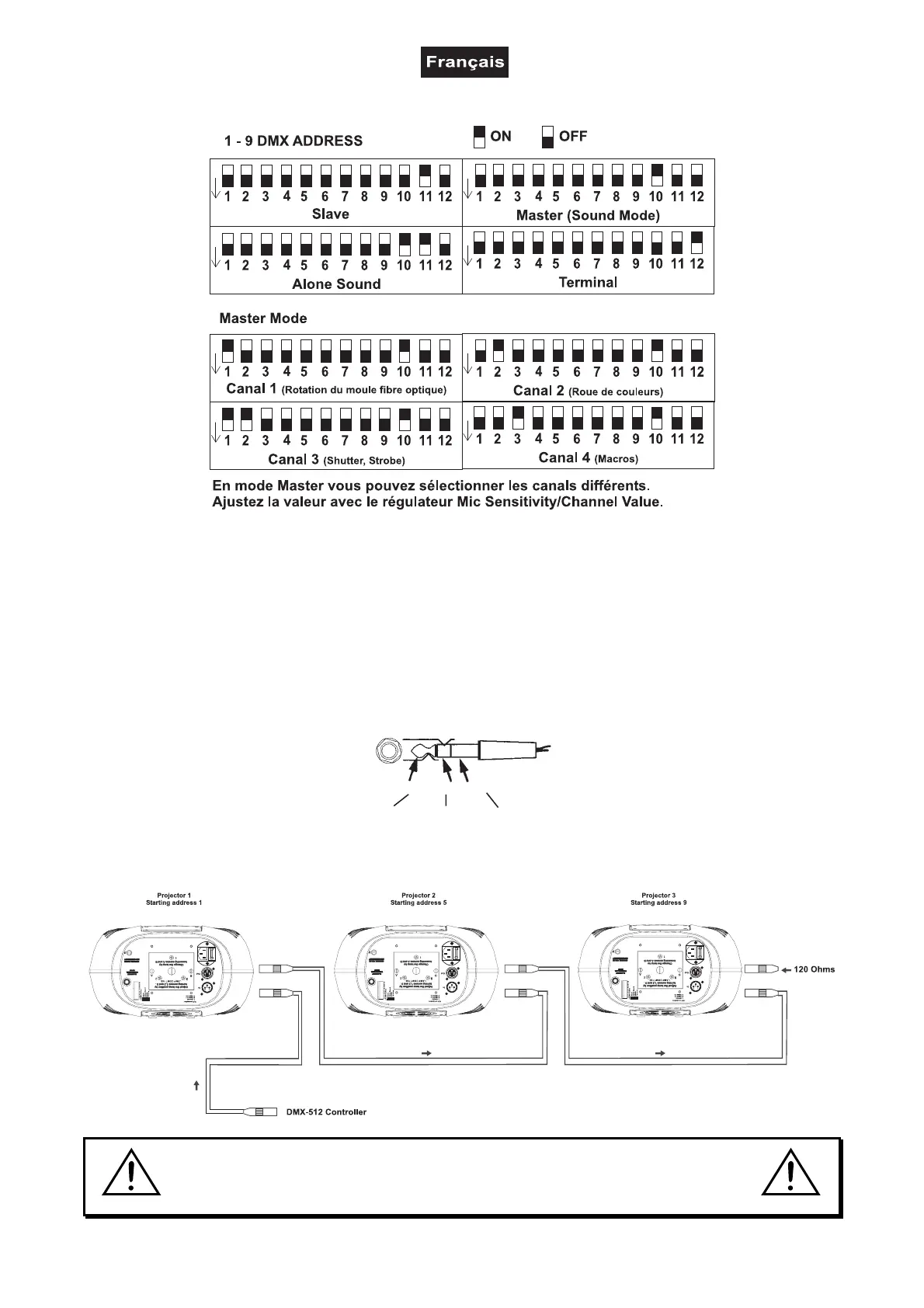 Connexions au contrôleur DMX-512 / raccord projecteur - projecteur