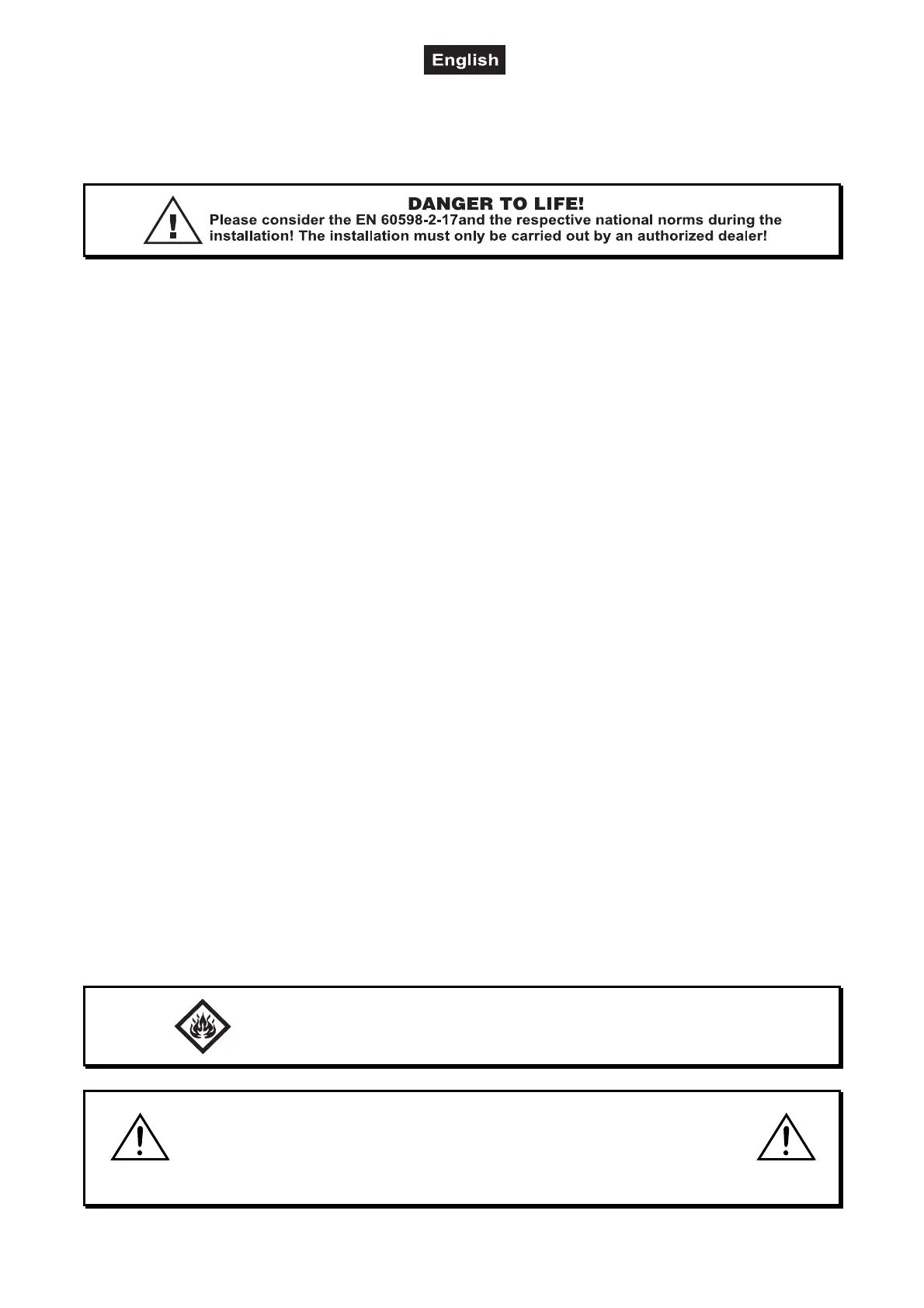 material (decoration articles, etc.) within a distance of min. 0.5 m.