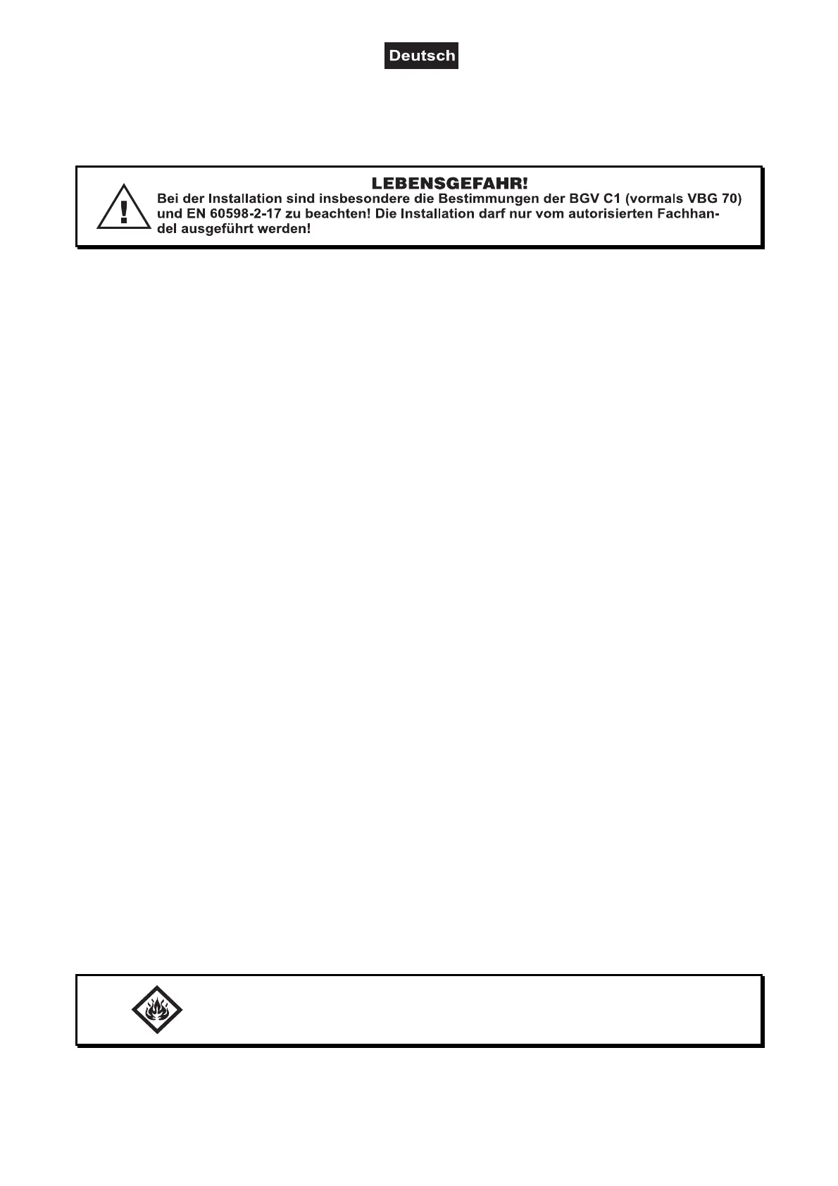 Beleuchterbrücken, unter hochgelegenen Arbeitsplätzen sowie an sonstigen Gefahrbereichen verboten.