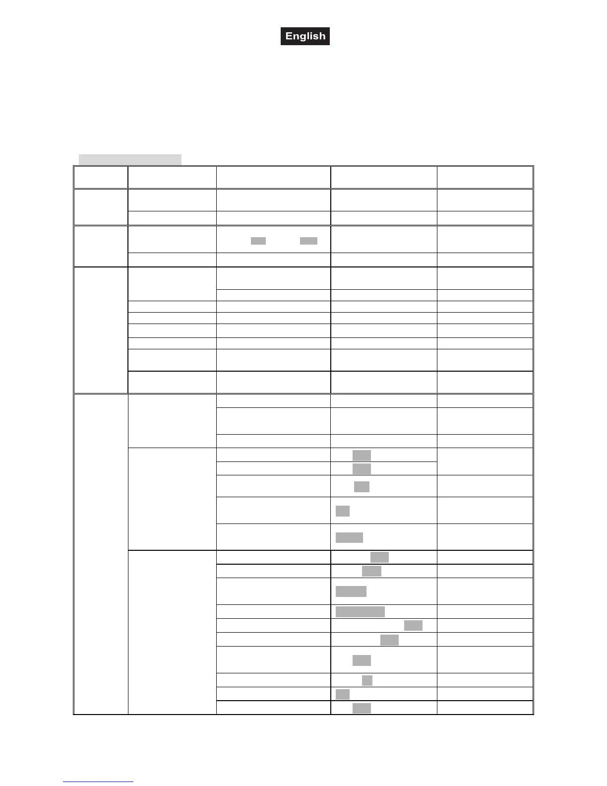 Default settings shaded. Basic Reload / Program Reload / Private Reload