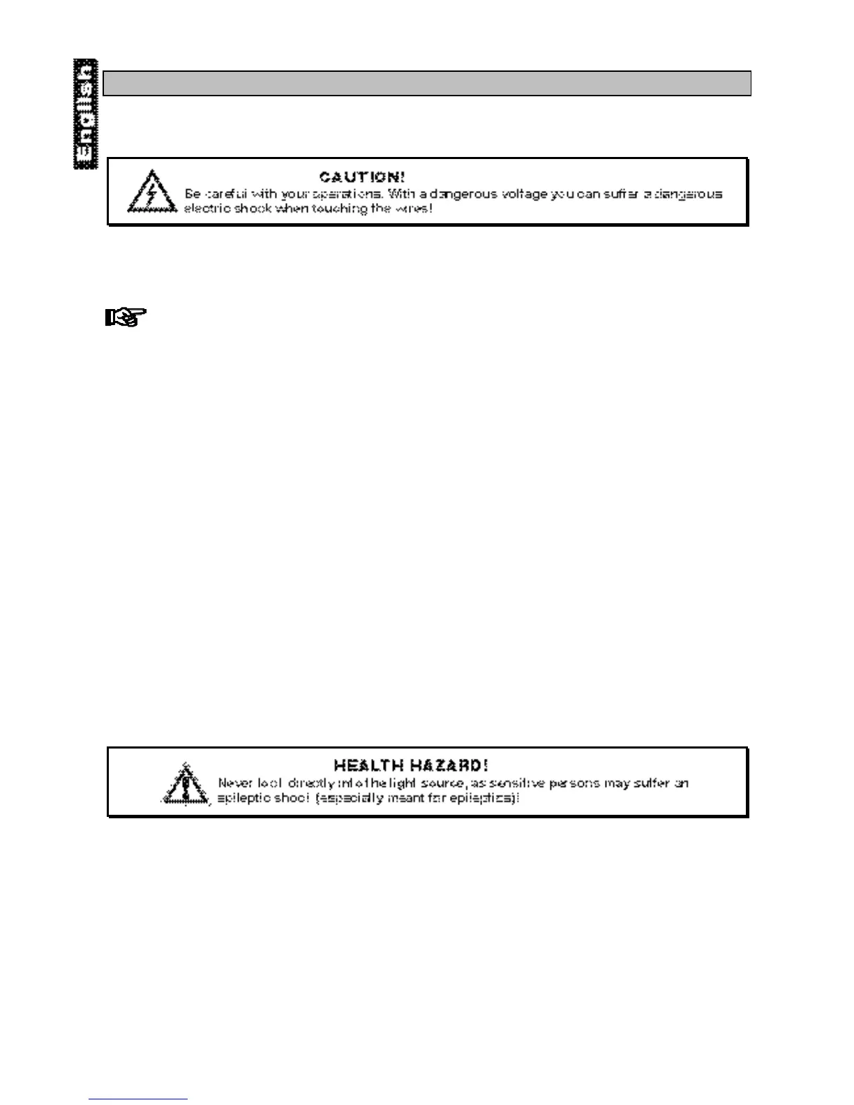 Lighting effects are not designed for permanent operation. Consistent operation breaks will ensure that the