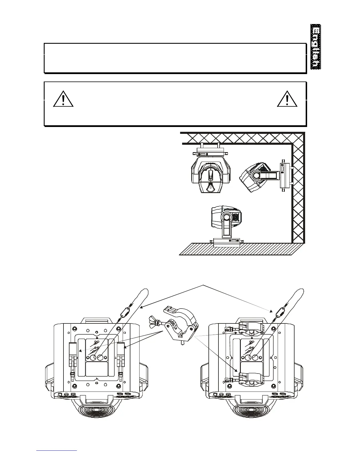 Use 2 appropriate clamps to rig the fixture on the truss.